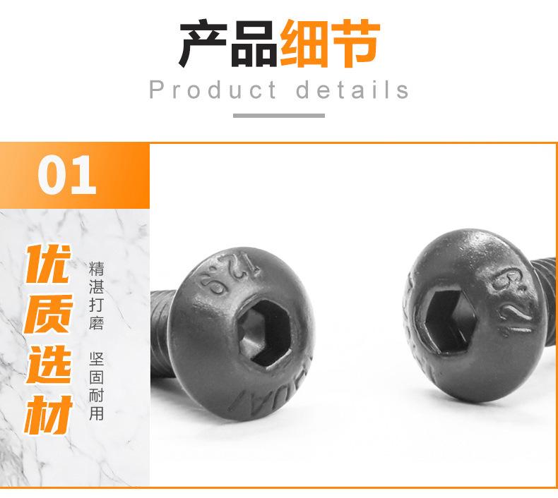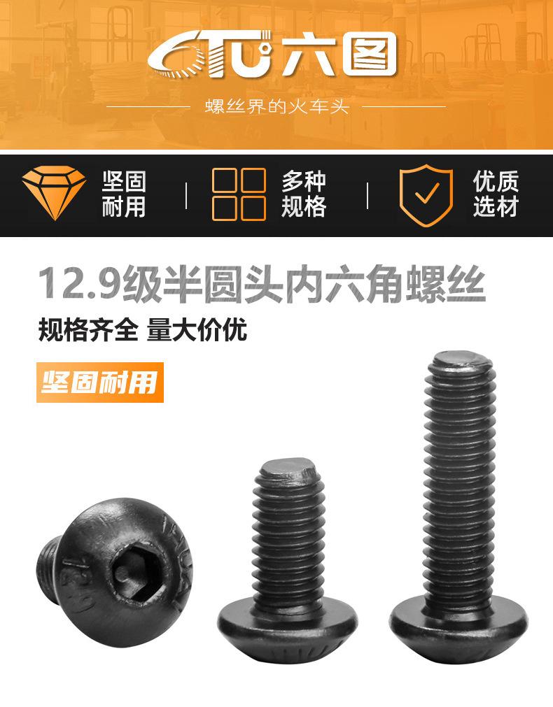 Tornillo de cabeza hueca hexagonal de cabeza semicircular de grado 12,9, tornillo de cabeza plana hexagonal interior, perno de cabeza hueca hexagonal de alta resistencia M4M5M6M8