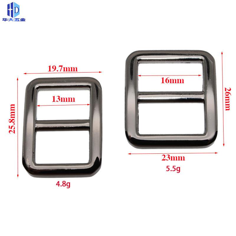 Accesorios de equipaje de hardware al por mayor de fábrica, hebilla de tres velocidades de aleación de zinc, hebilla de ajuste de correa de hombro, hebilla de día de metal, hebilla cuadrada