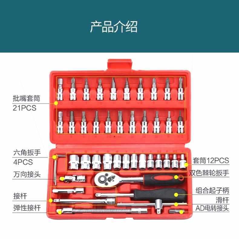Caja de herramientas con llave de trinquete rápida multifunción para mantenimiento del automóvil, 46 piezas, combinación de enchufes pequeños voladores, para el hogar