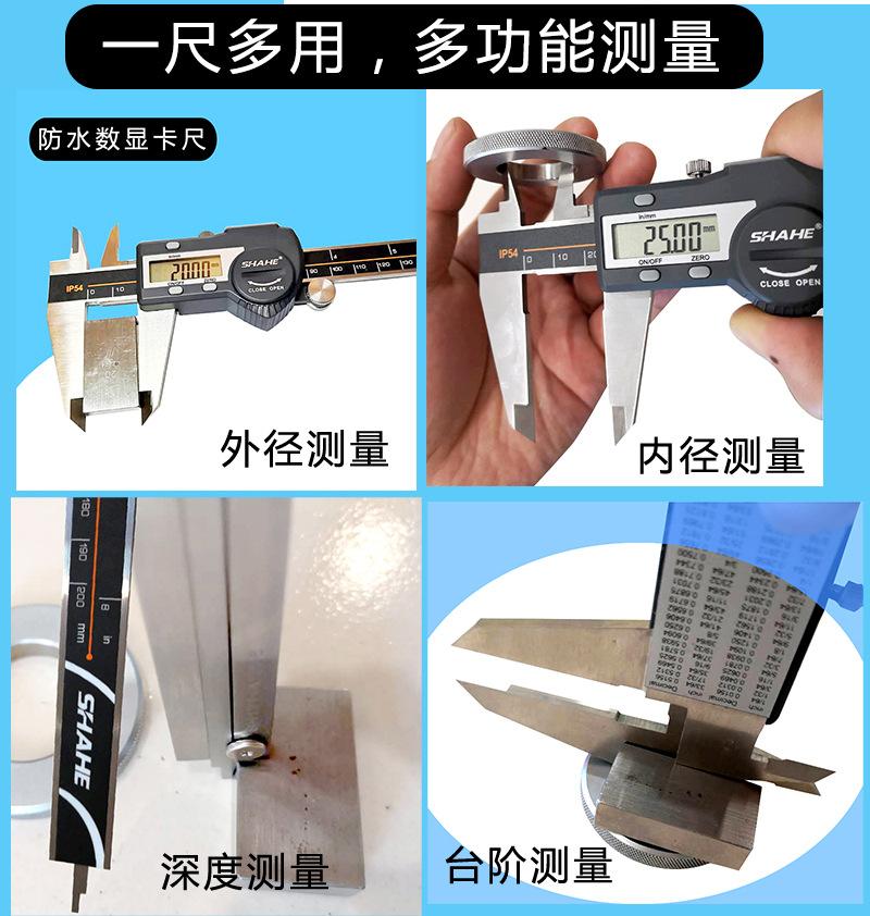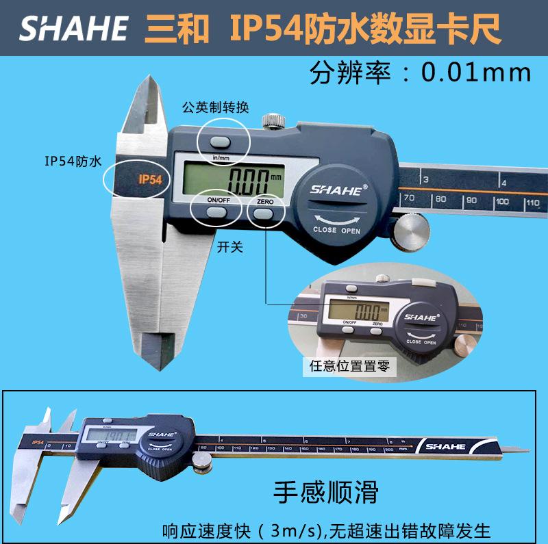Calibrador digital SHAHE de tres pulgadas y calibre vernier 0-150-200-300-1000 IP54, calibrador electrónico resistente al agua