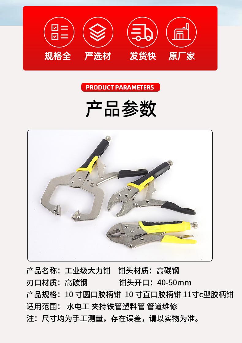 10-inch round mouth rubber handle pliers, 10-inch straight rubber handle pliers, 11 inch C type rubber handle pliers