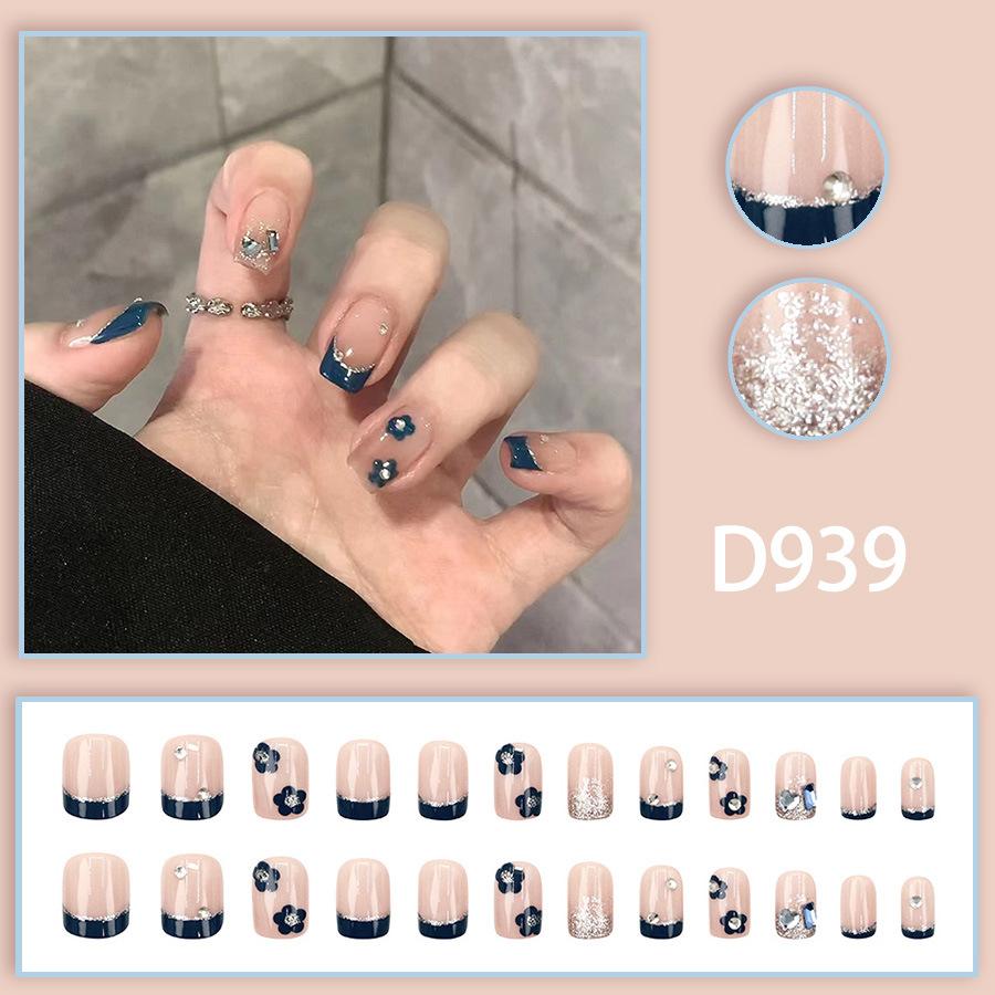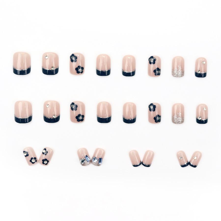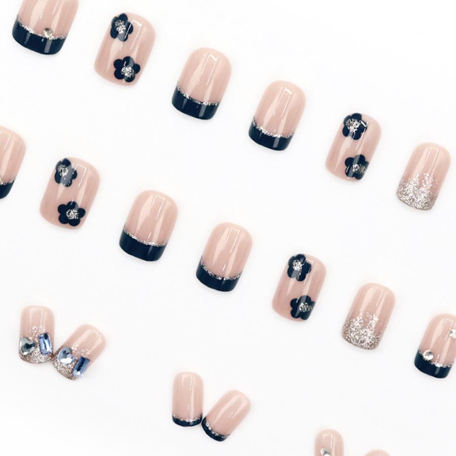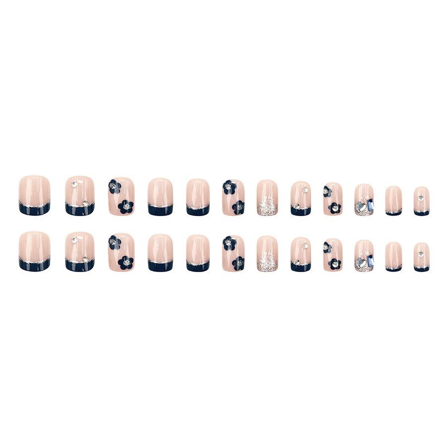 Nuevo parche para uñas cuadrado tipo A con diseño de flor francesa brillante, dulce, sencillo y combinable, 24 piezas