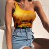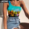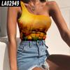 Europa y Estados Unidos nuevo Amazon comercio exterior flores y plantas estampado 3D digital bottoming wrap pecho desgaste un solo hombro chaleco camiseta