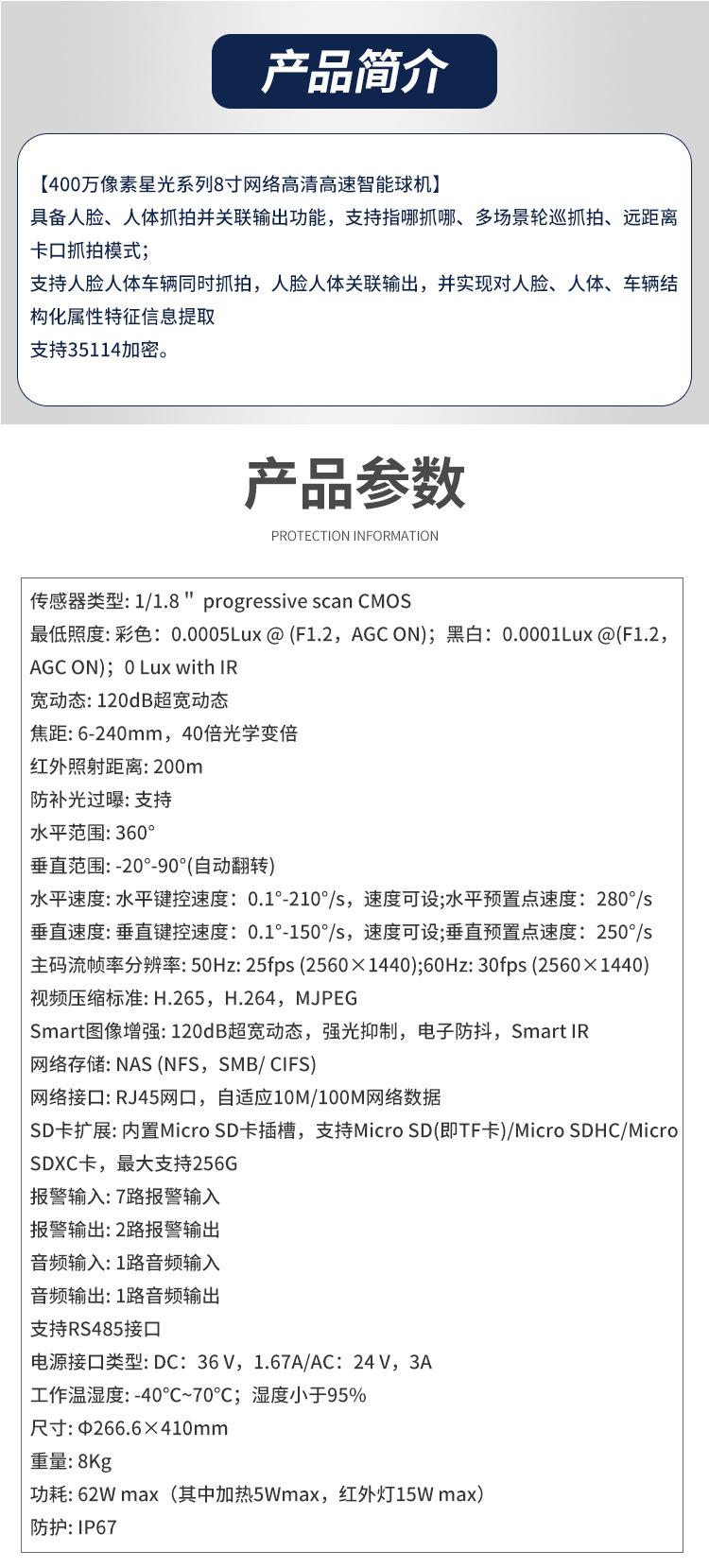 Cámara de vigilancia HIKVISION Serie Starlight de 4 millones de píxeles, 8 pulgadas, red HD de alta velocidad