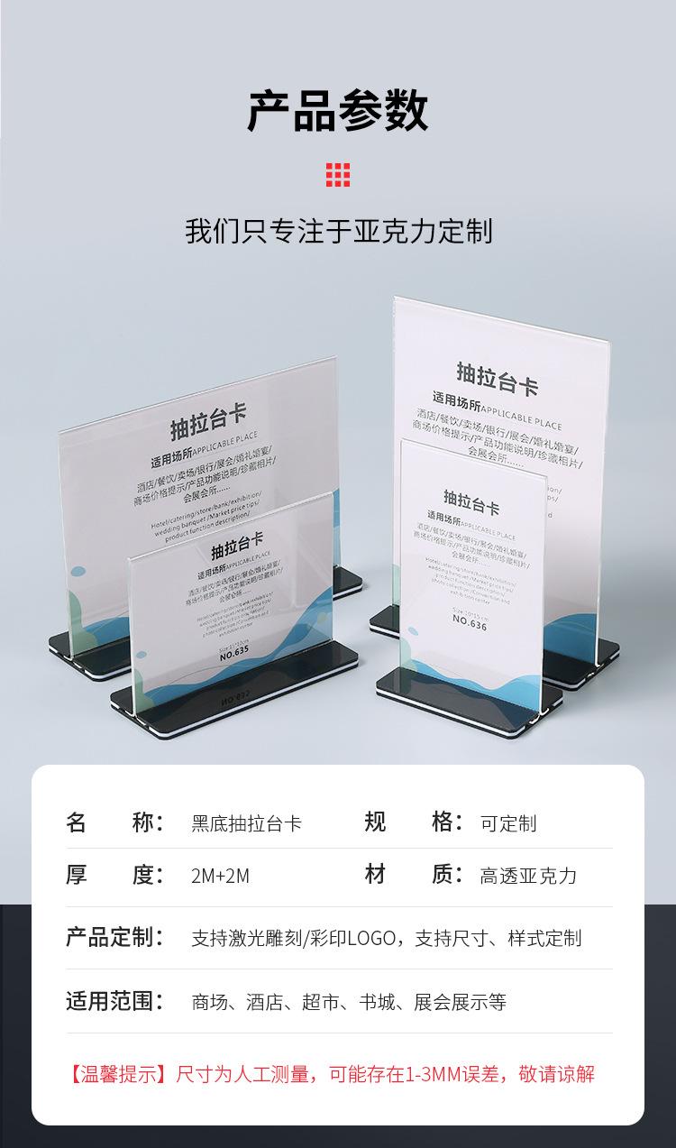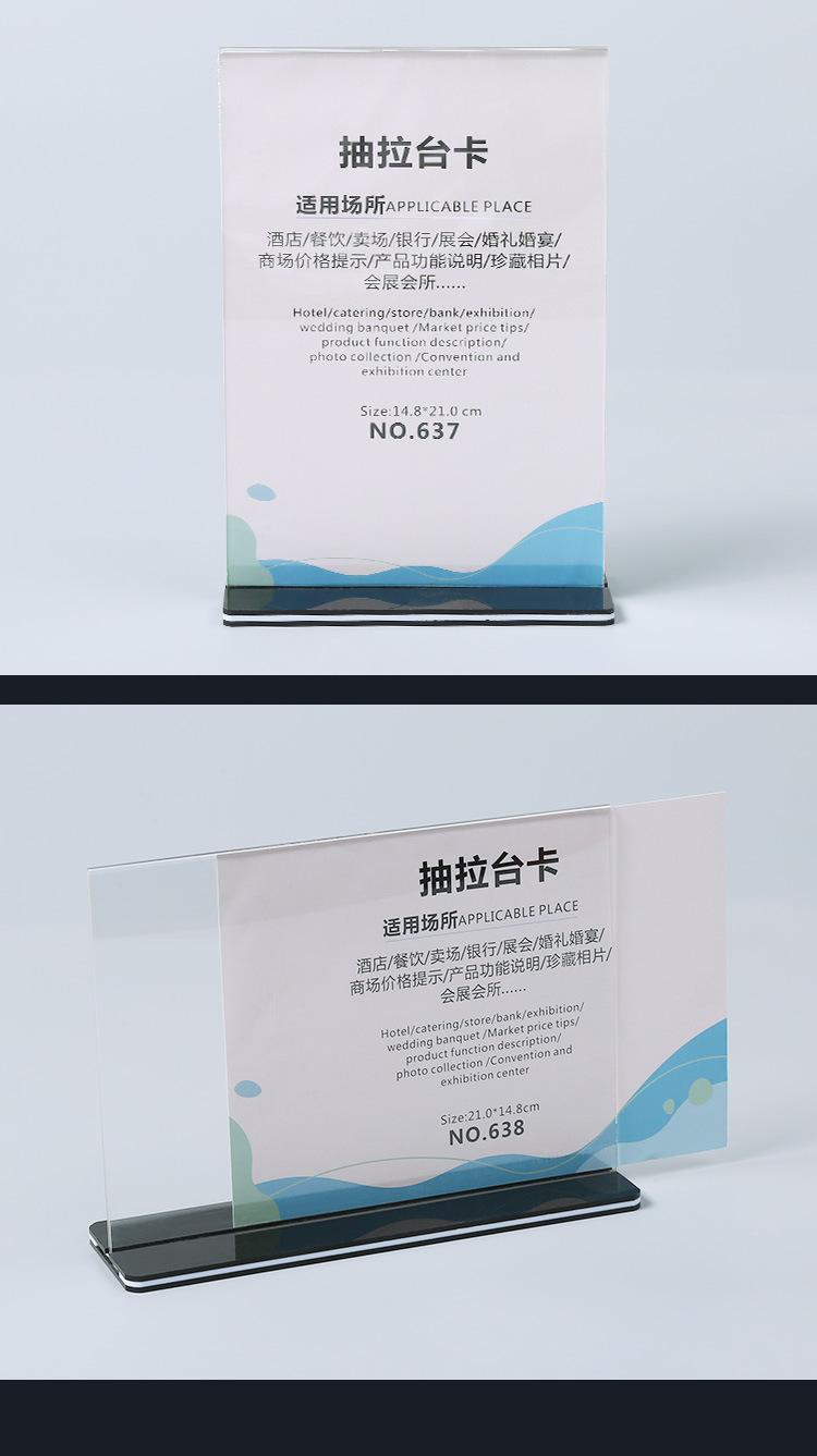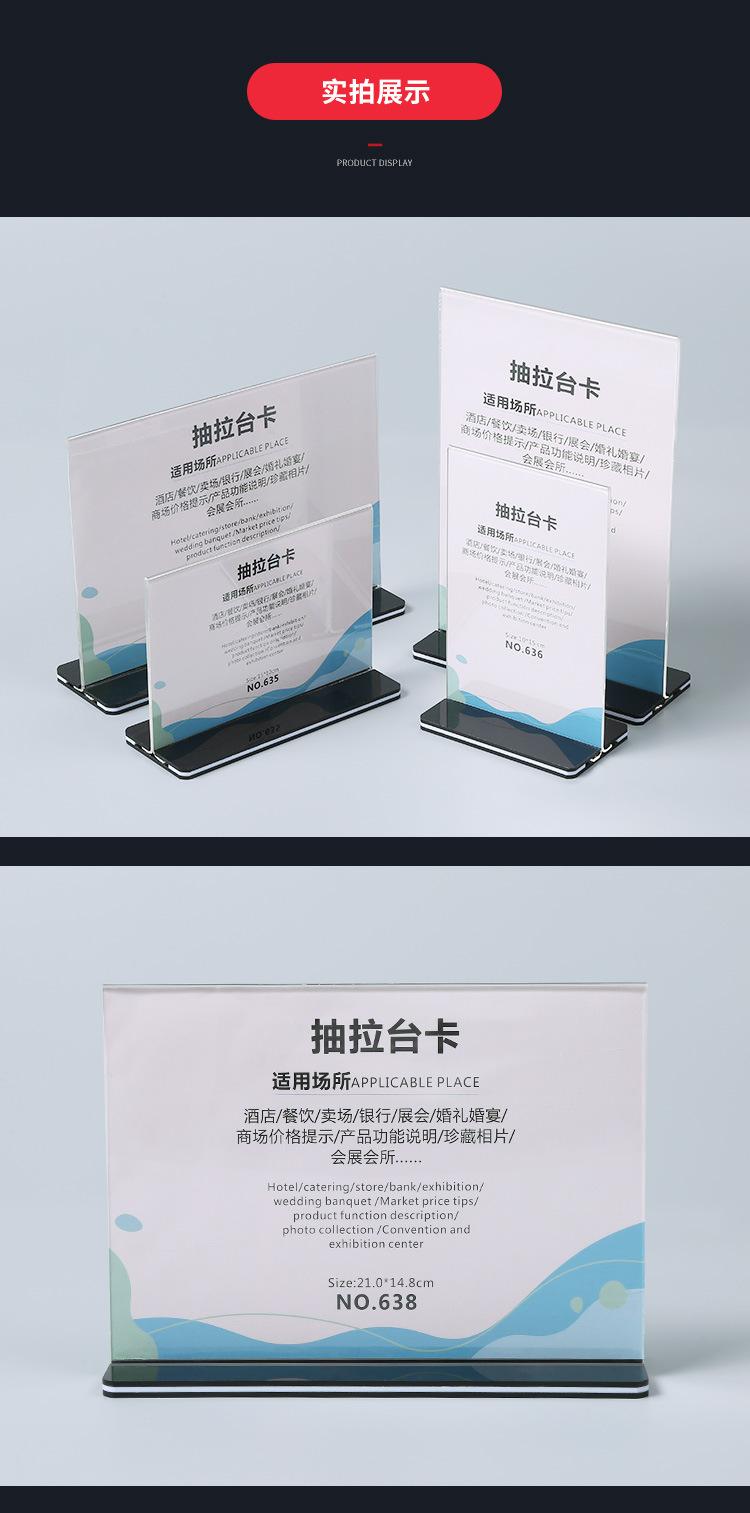 Tarjeta de mesa acrílica, tarjeta de mesa negra tipo T, tarjeta de pie transparente de doble cara, tarjeta de exhibición de letrero de mesa de dibujo A4, tarjeta de pie para tienda de té con leche