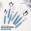 Cuchillo, tenedor y cuchara coreanos de acero inoxidable 304 personalizados, cuchara sopera doméstica engrosada, cuchara de postre de mango largo, cuchillo para bistec, cuchara para vajilla