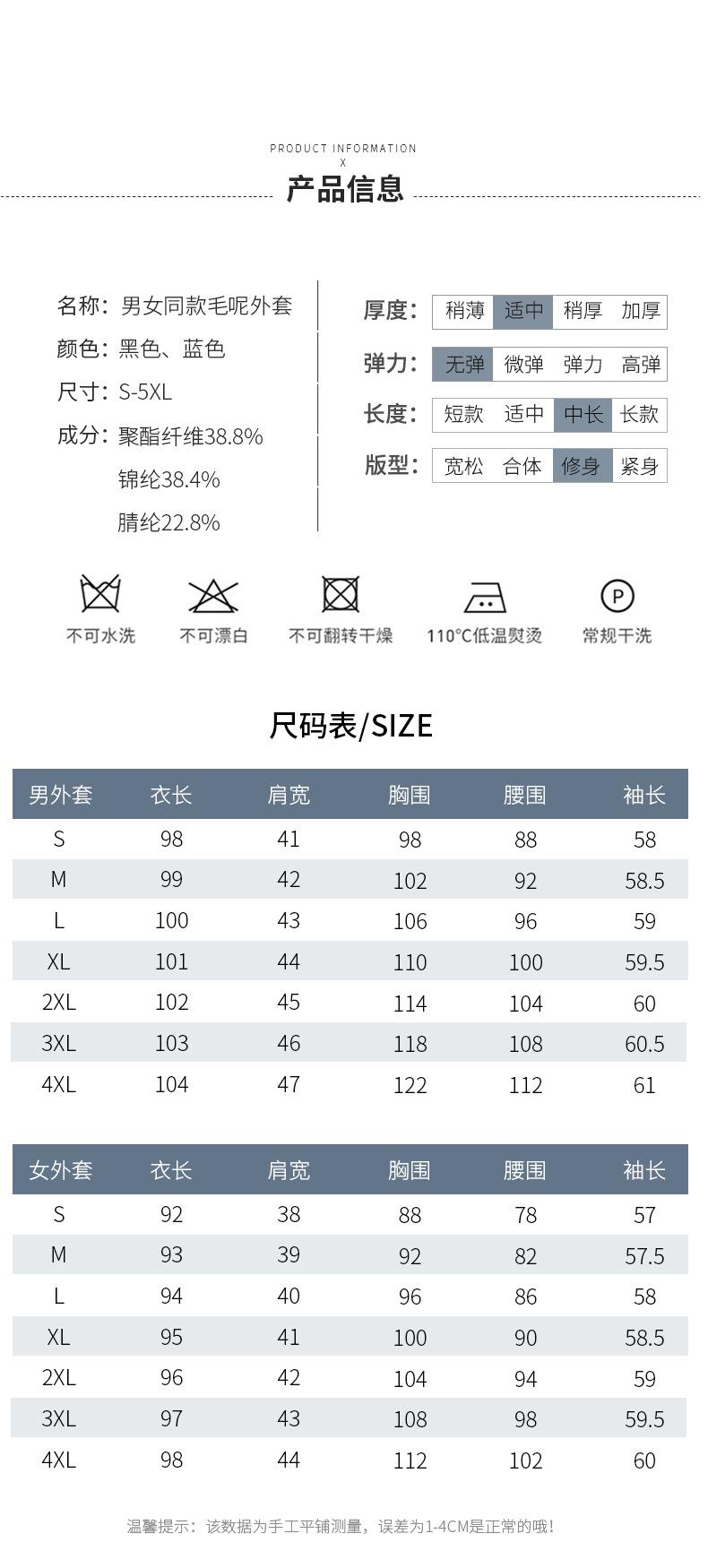 S, M, L, XL, XXL, XXXL, Please check the size. the coat is very heavy. you will be responsible for the exchange shipping fee