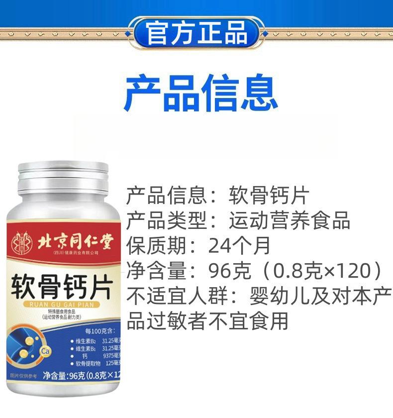 Comprimidos de calcio para cartílago Beijing Tongrentang (120 comprimidos), para negocios deportivos, alimentos, en stock, agencia mayorista.