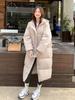 Chaqueta de plumón de longitud media para mujer, nueva chaqueta de invierno 2025 de color liso de alta gama, muy atractiva, con capucha y plumón de pato blanco grueso.