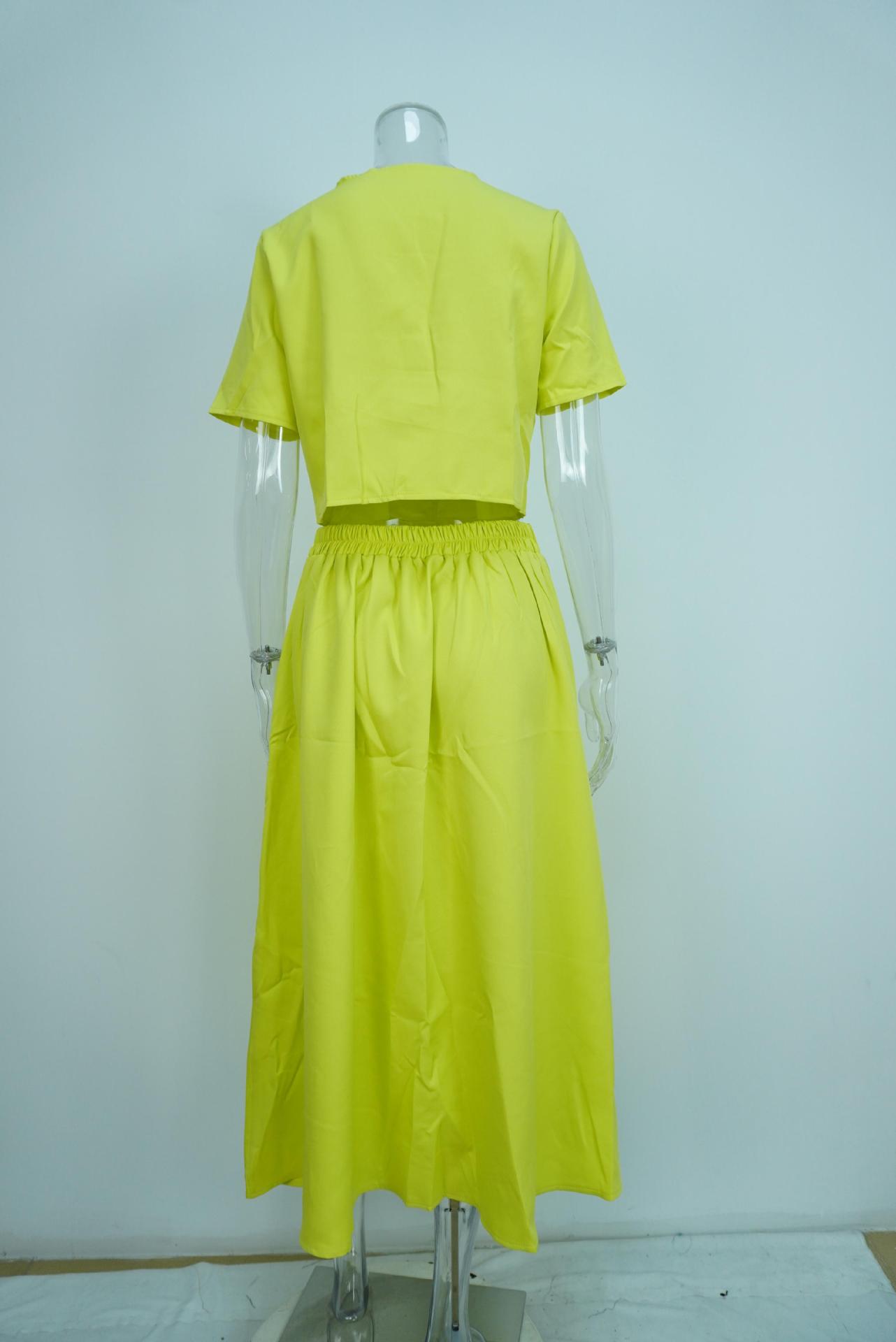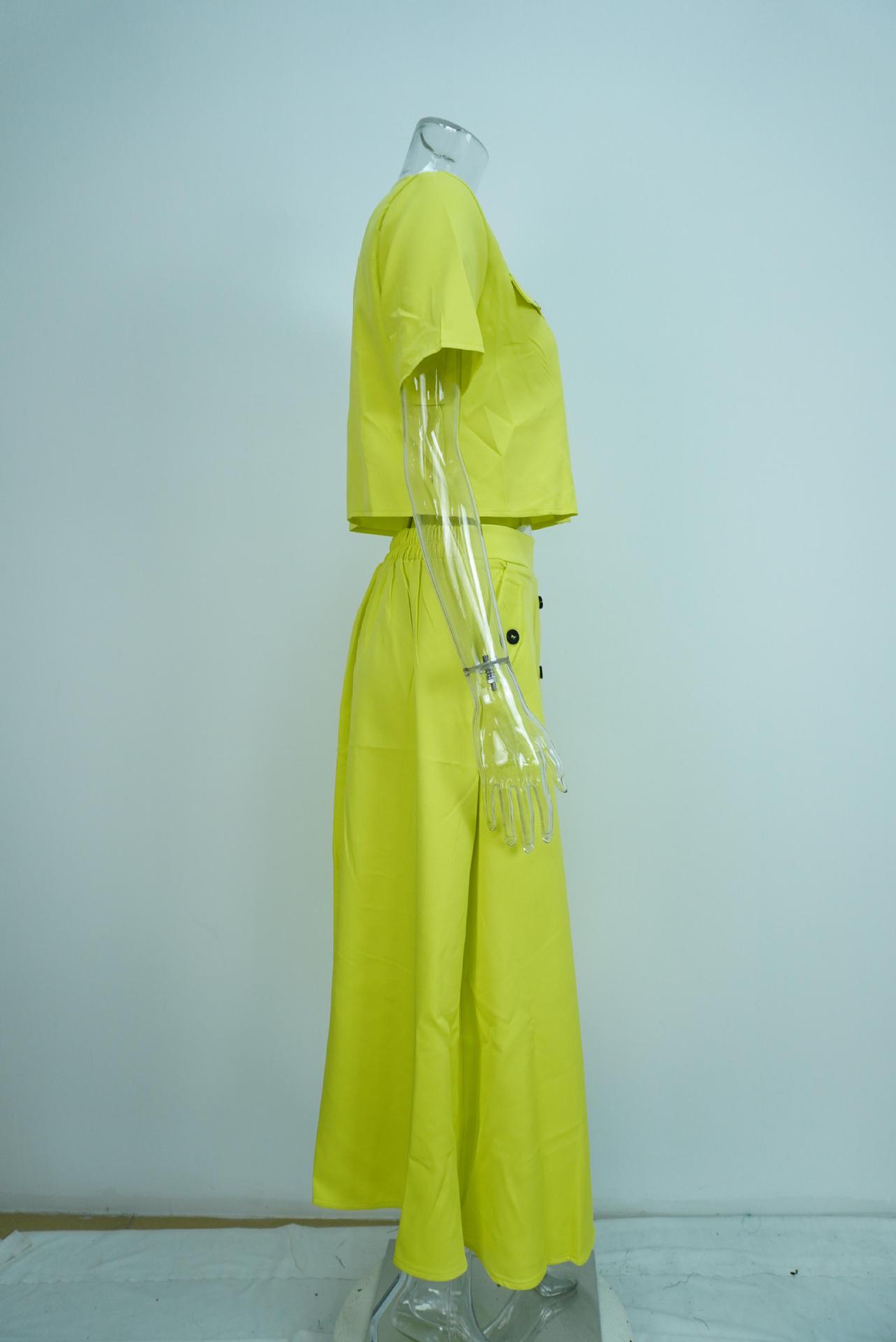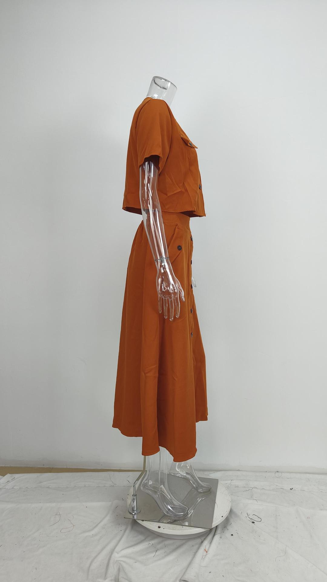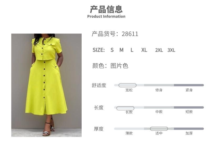 Transfronterizo 2025 Primavera Ropa Europea y Americana Elegante Color Puro Casual Top Corto Falda de un Solo Botón Traje de Moda