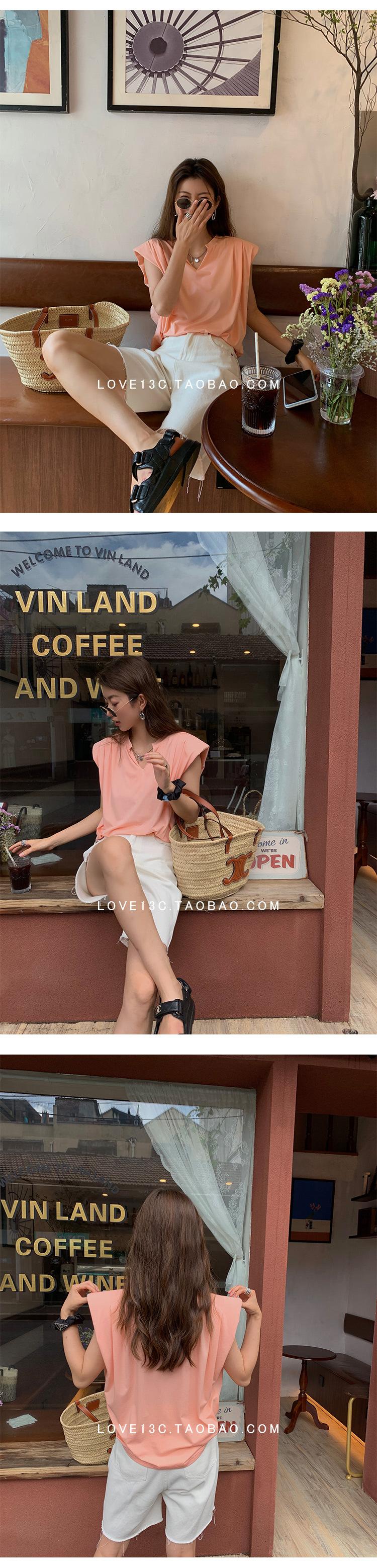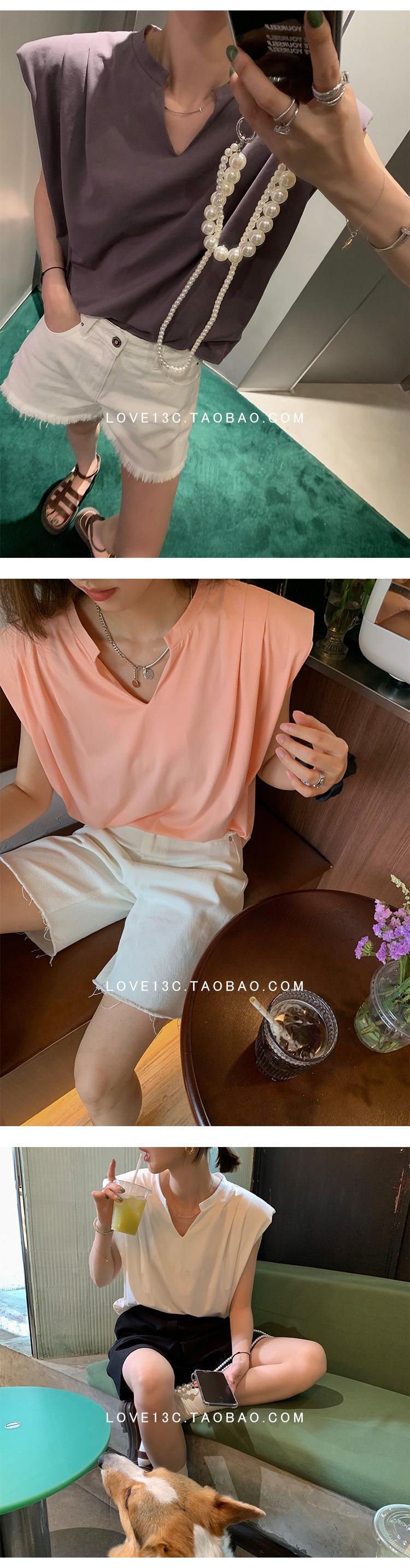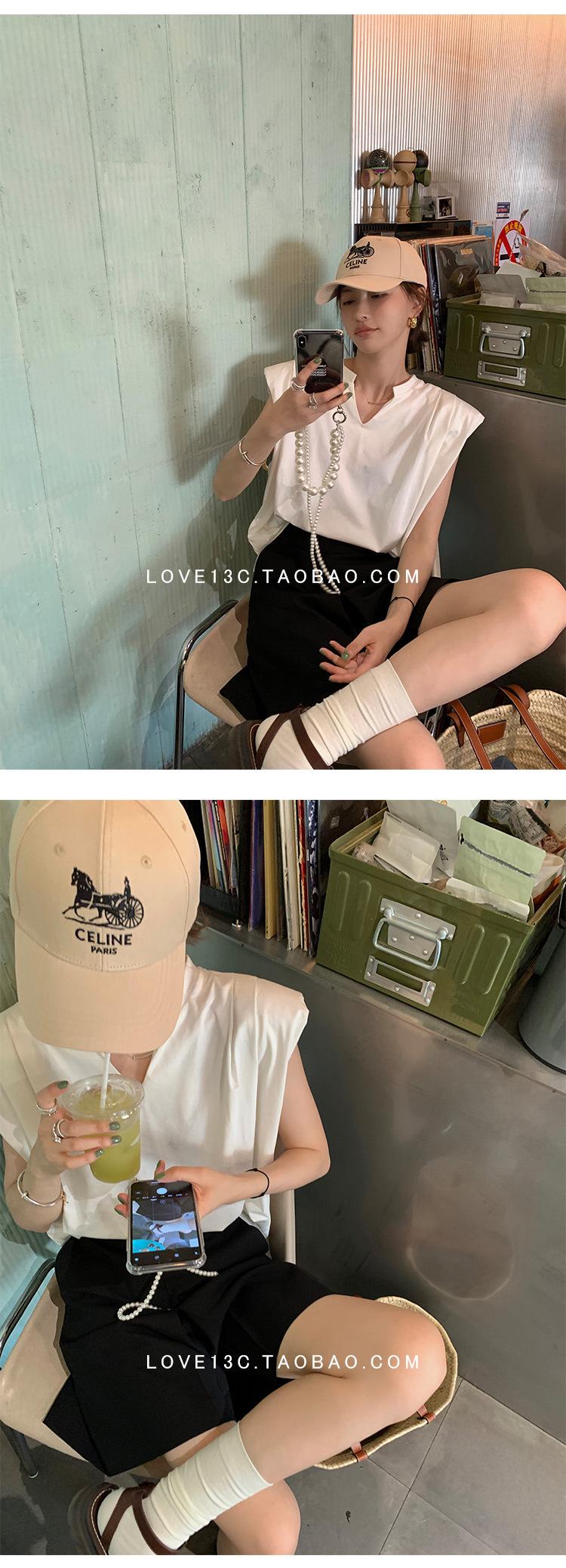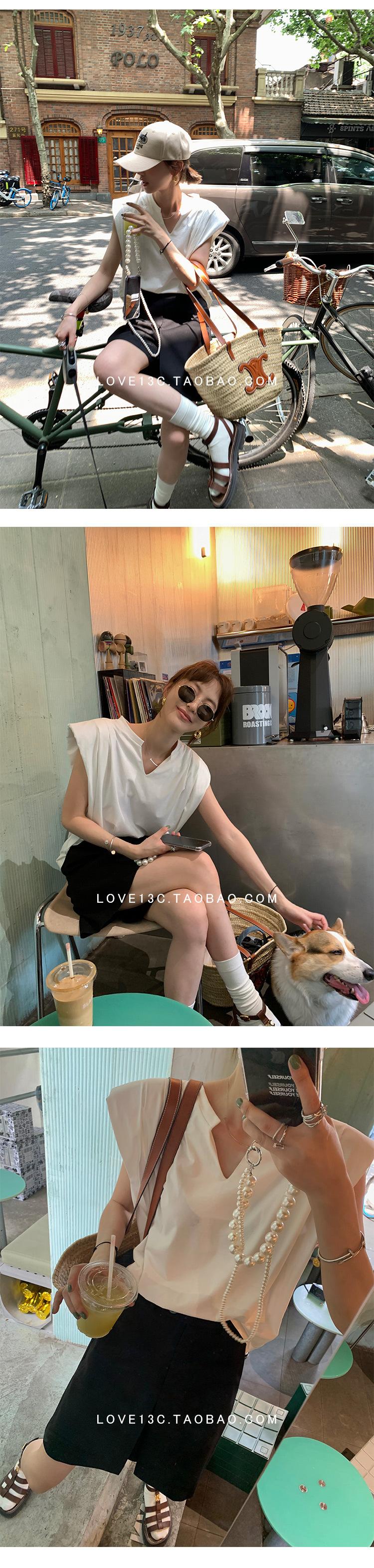 [13] Camiseta sin mangas con hombreras para mujer Verano 2022 Nuevo diseño Nicho Holgada Adelgazante Versátil Top de cuello en V
