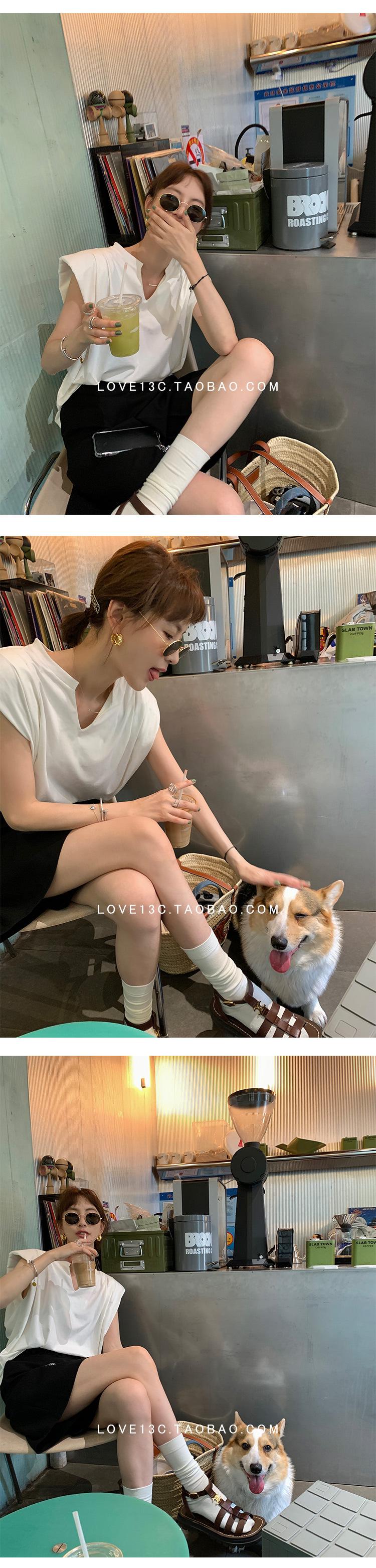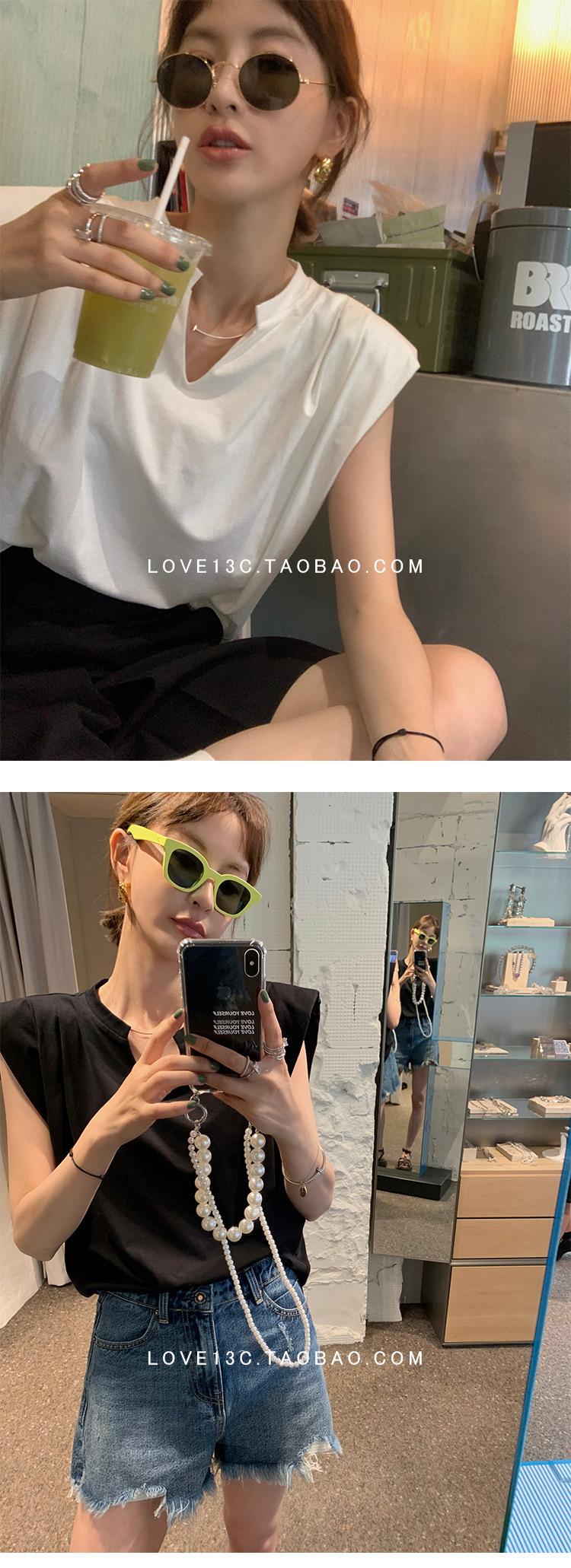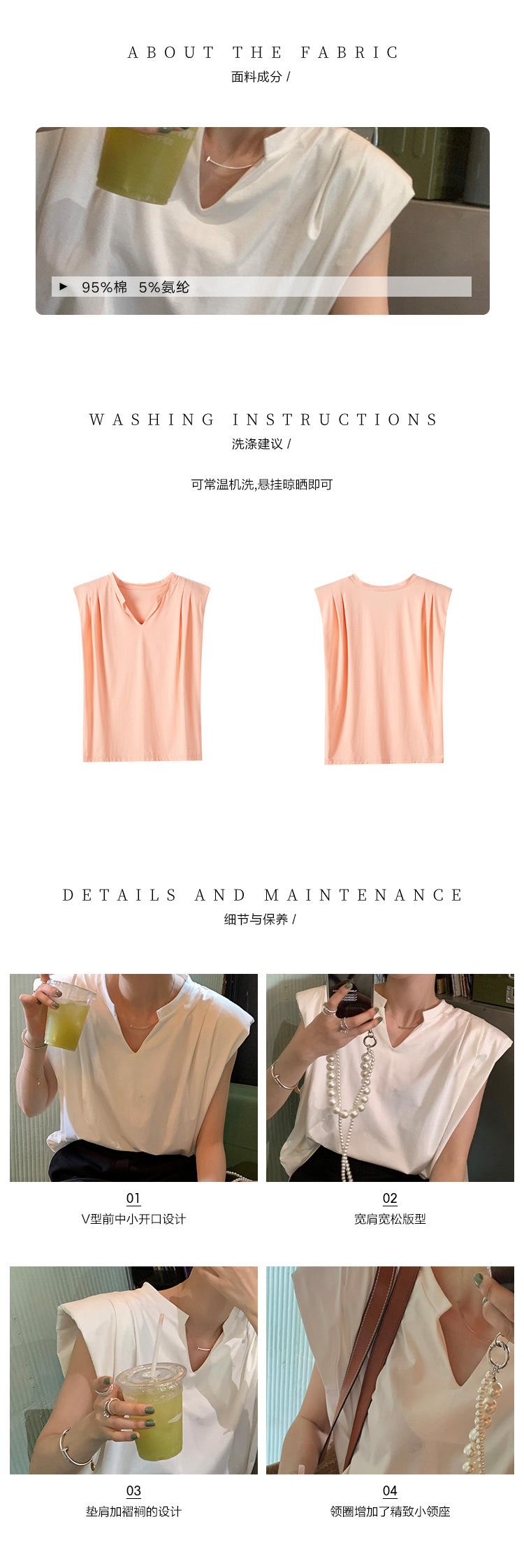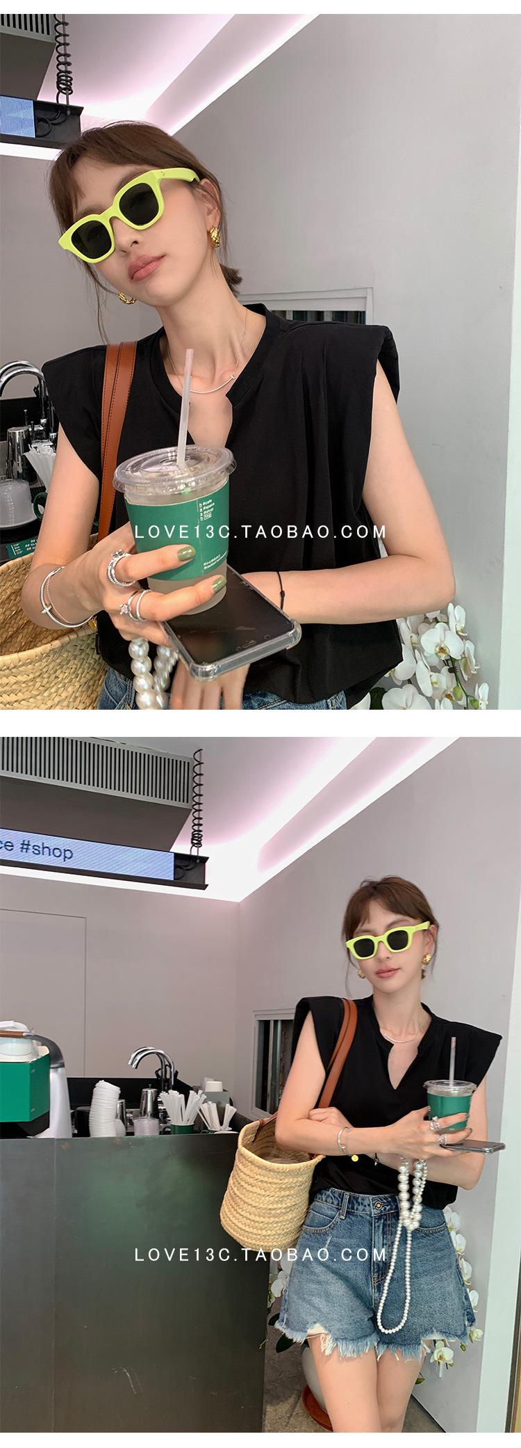 [13] Camiseta sin mangas con hombreras para mujer Verano 2022 Nuevo diseño Nicho Holgada Adelgazante Versátil Top de cuello en V