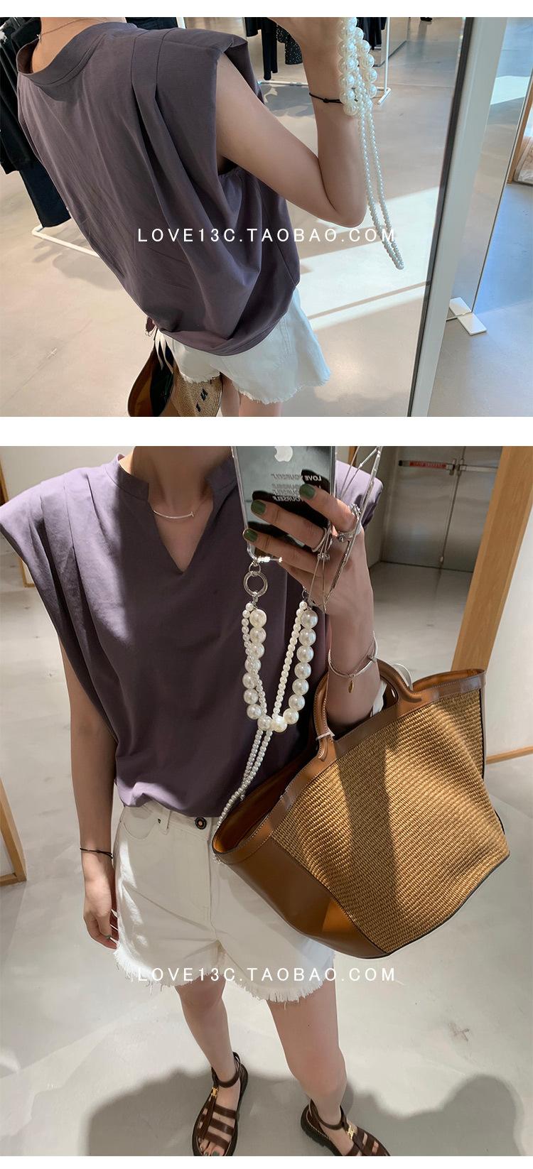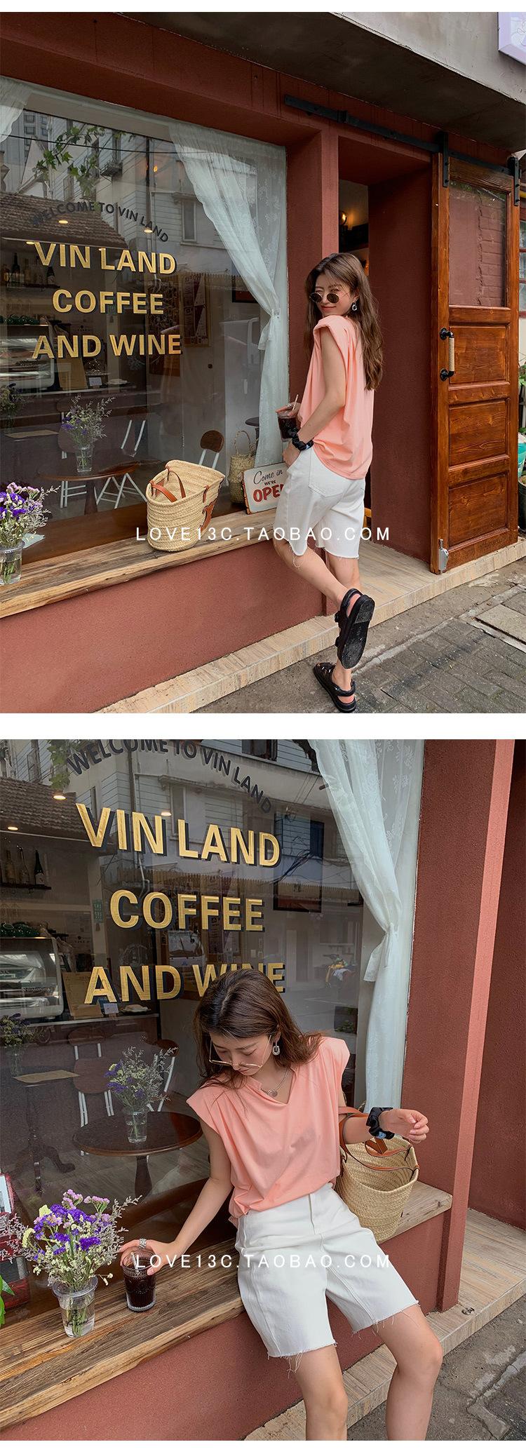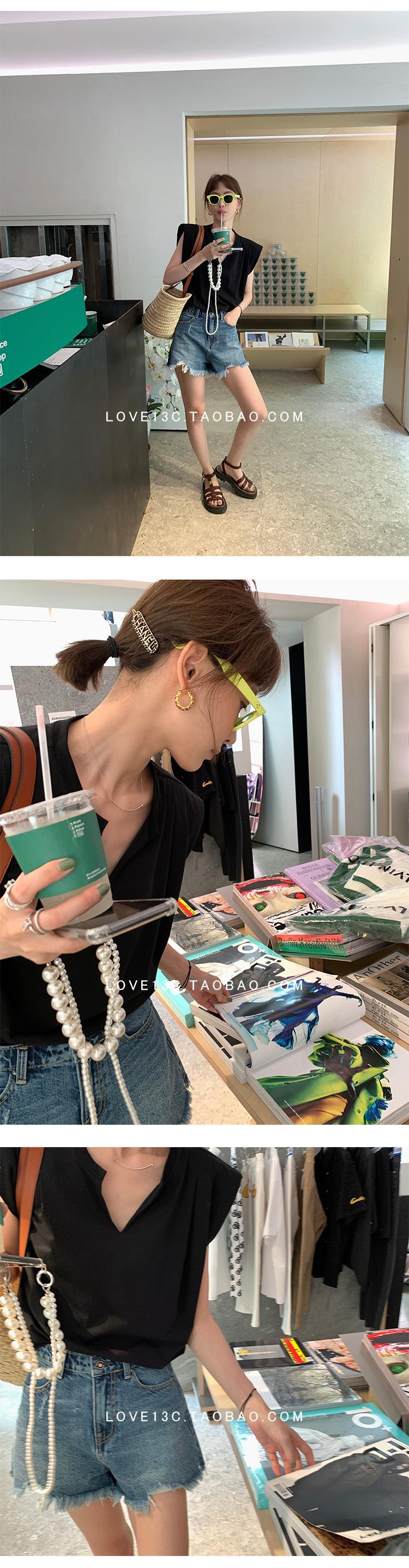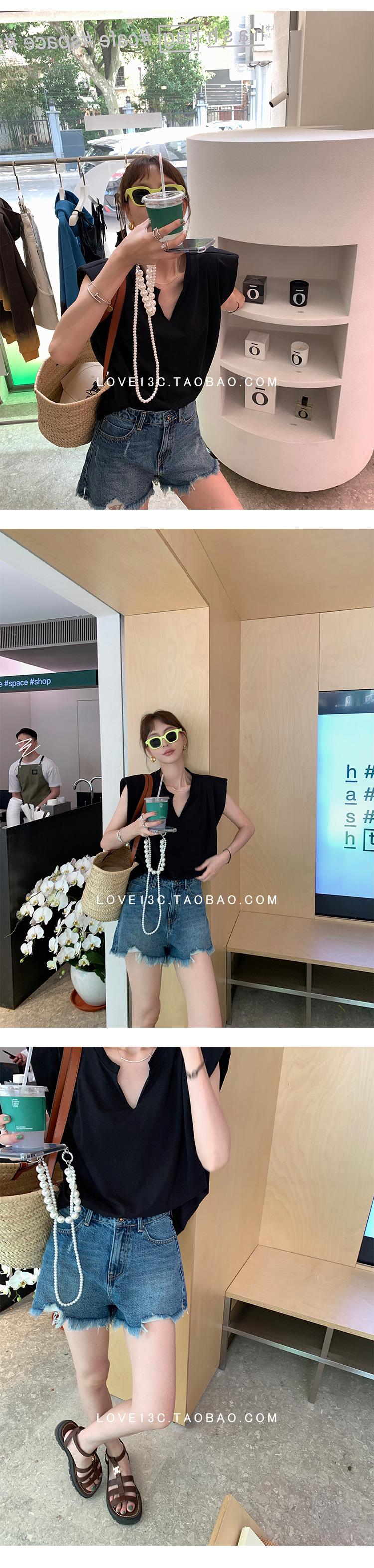[13] Camiseta sin mangas con hombreras para mujer Verano 2022 Nuevo diseño Nicho Holgada Adelgazante Versátil Top de cuello en V