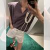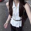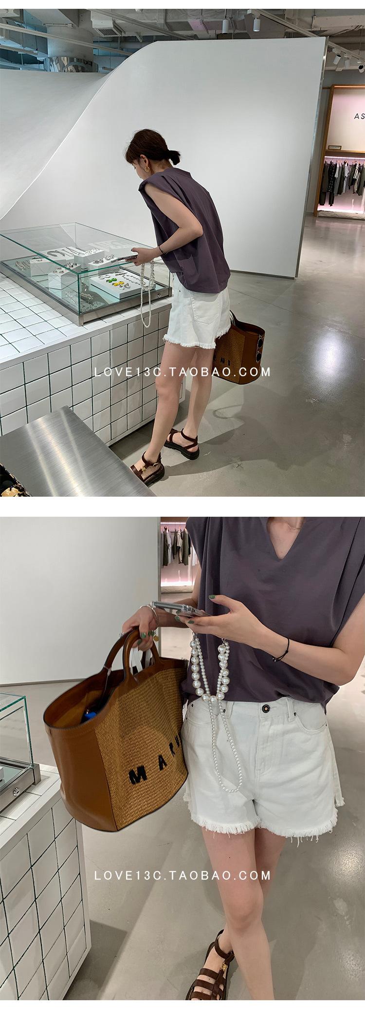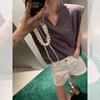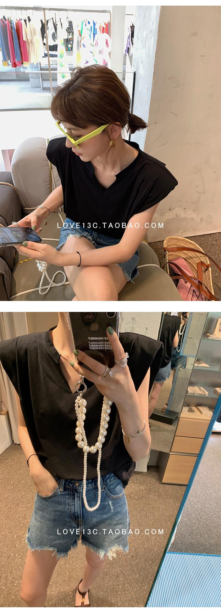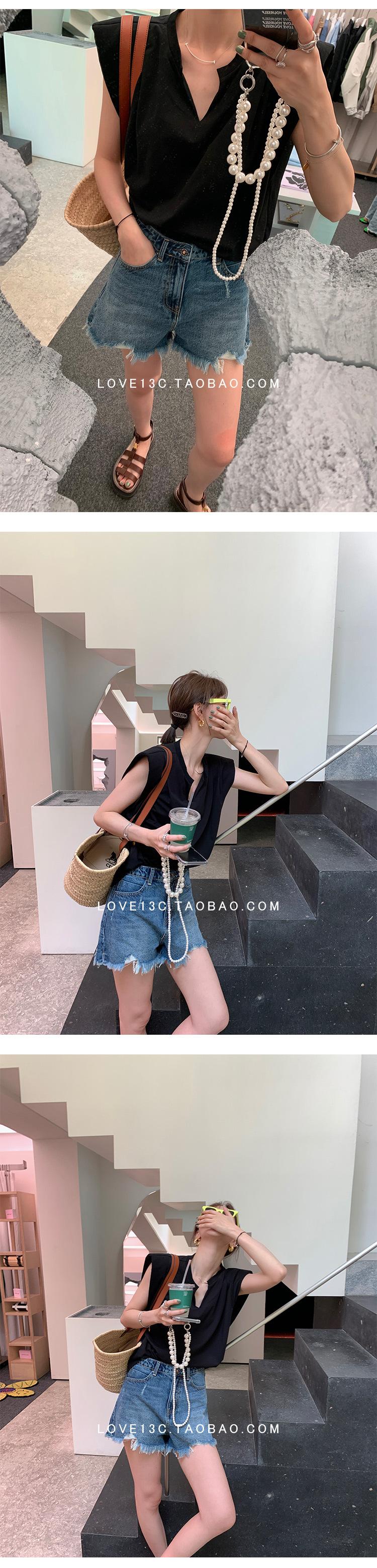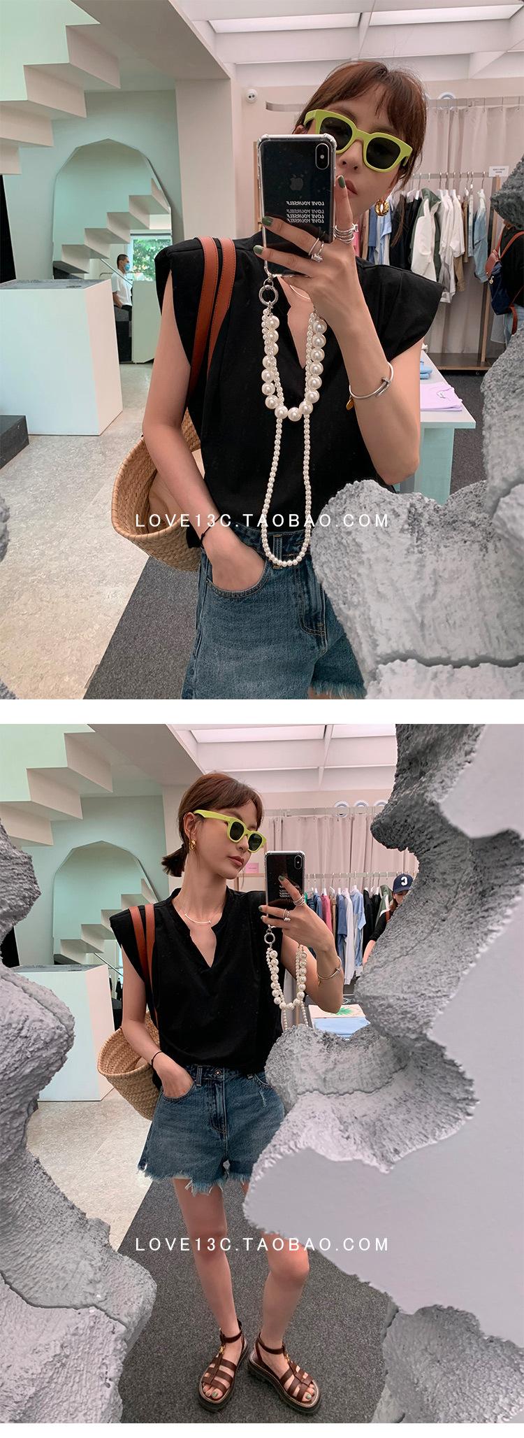 [13] Camiseta sin mangas con hombreras para mujer Verano 2022 Nuevo diseño Nicho Holgada Adelgazante Versátil Top de cuello en V