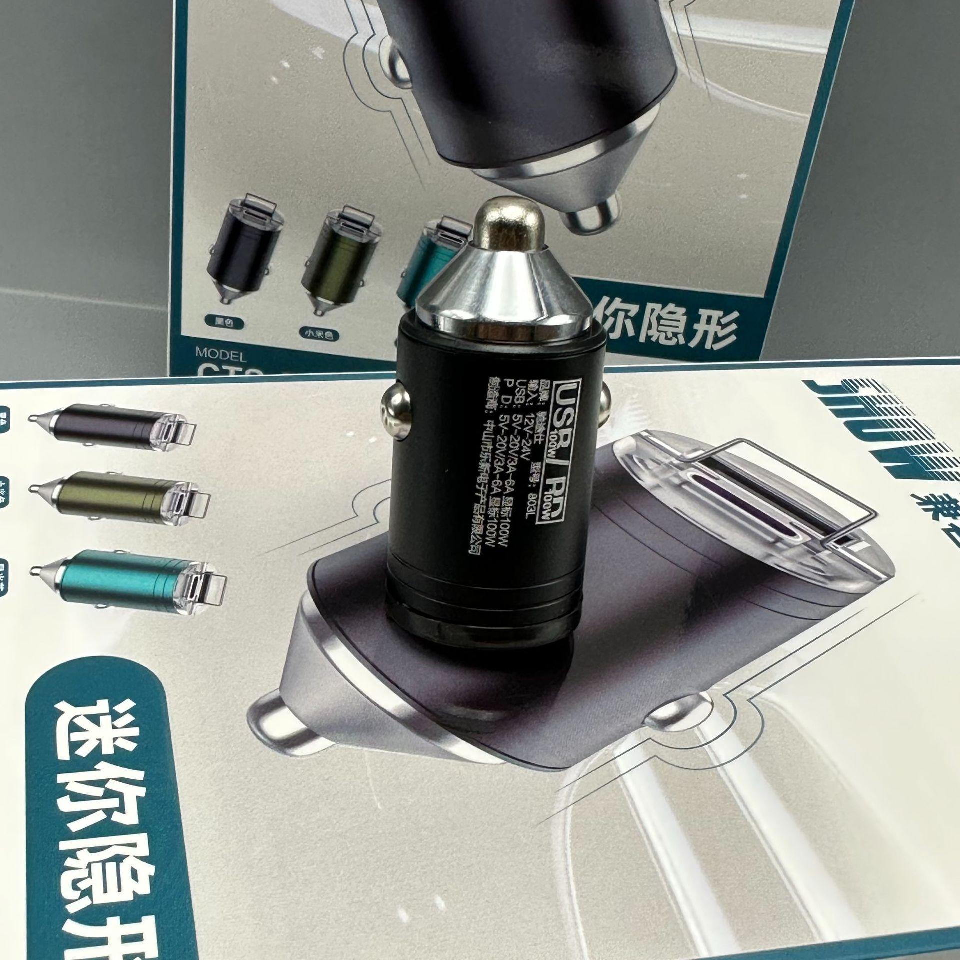 Cargador de coche PD3.0, carga rápida, multifunción, minianillo de extracción para encendedor de cigarrillos, oculto, 100 W, carga rápida para coche