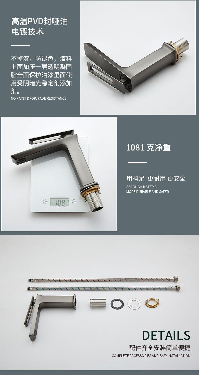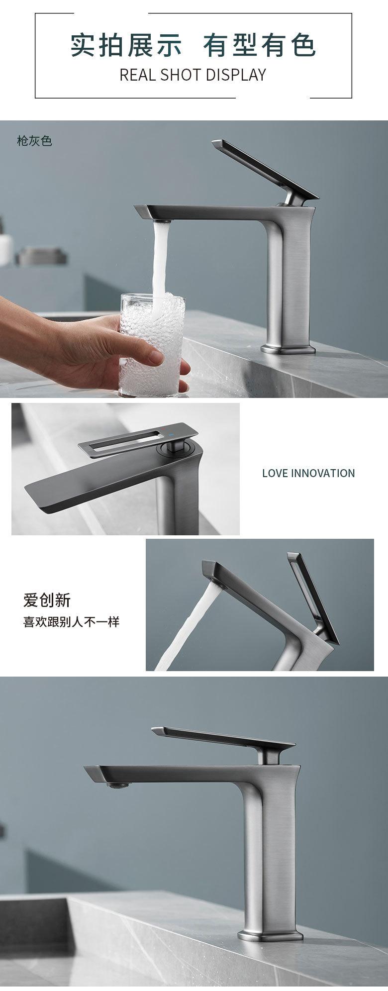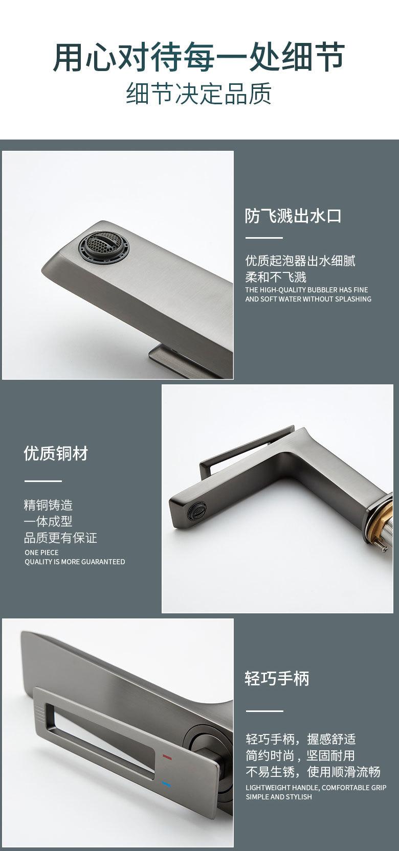 Grifo de lavabo de cobre caliente y frío, grifo de baño, pistola de lavabo, grifo de baño gris