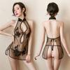 Pijama de Lencería Sexy Encaje Abertura Uniforme Malla para Mujer Transparente Clásico Bordado Traje Cheongsam