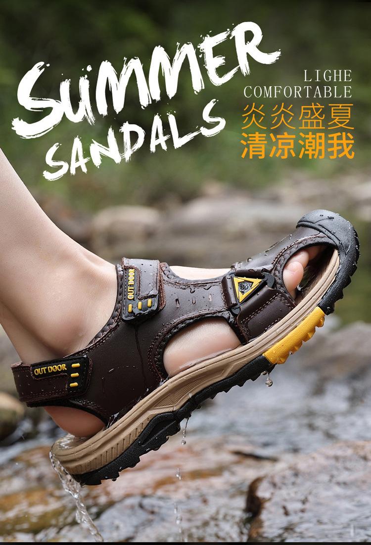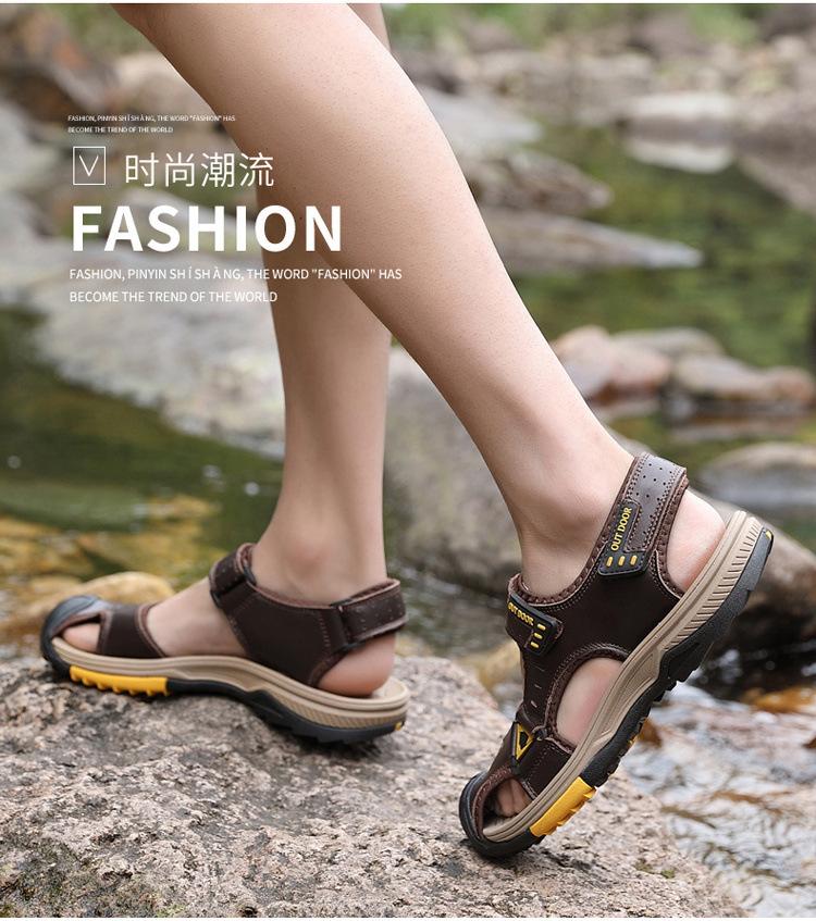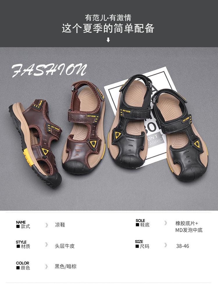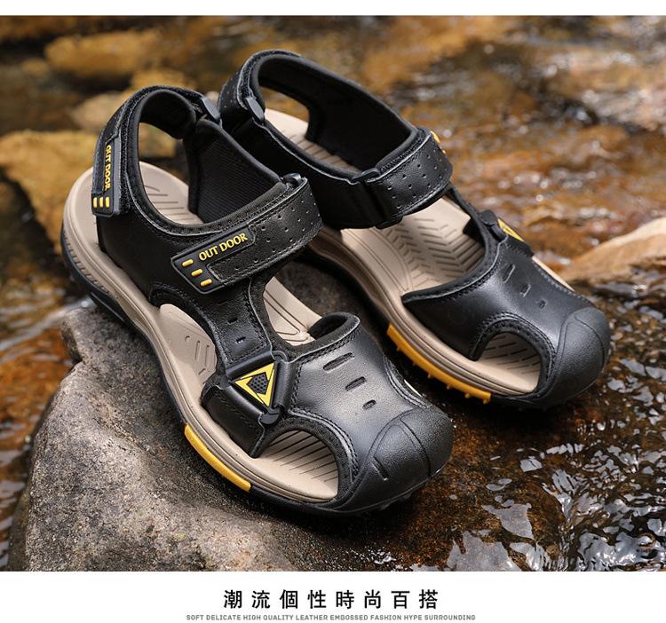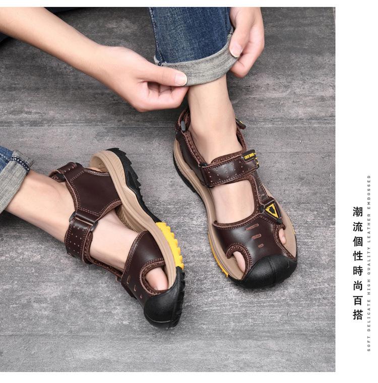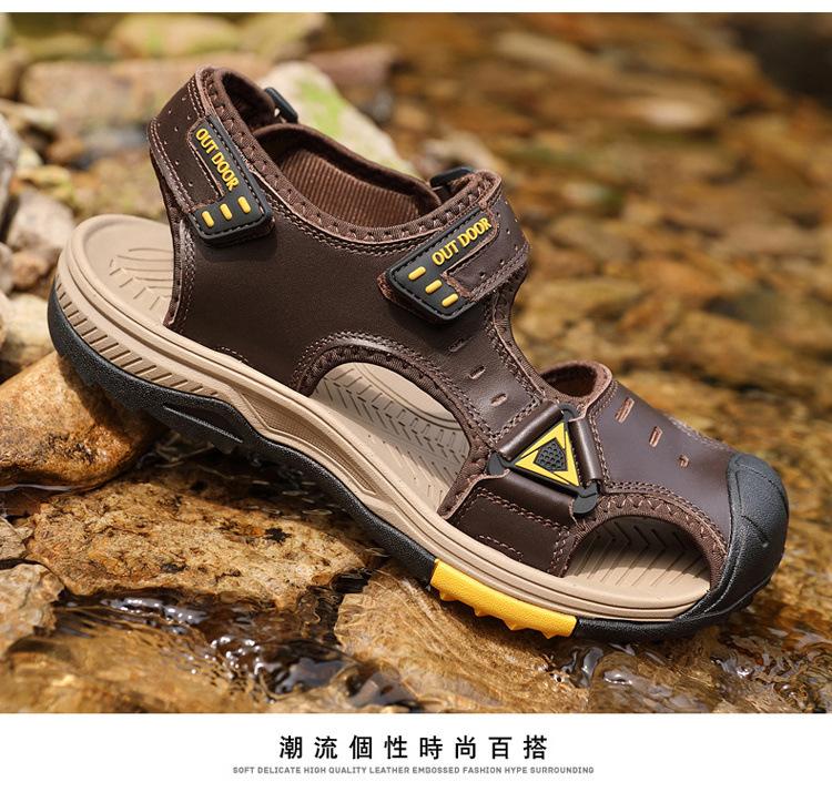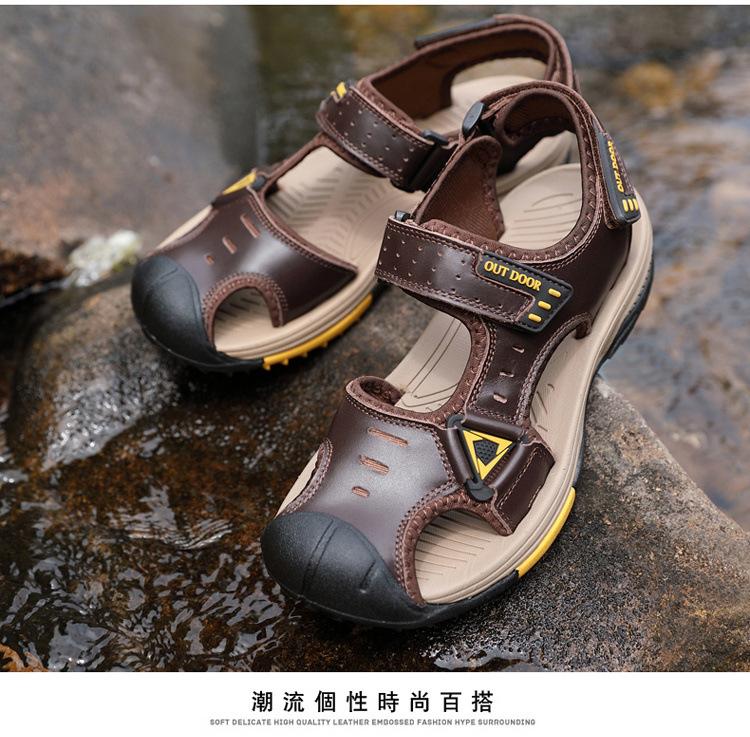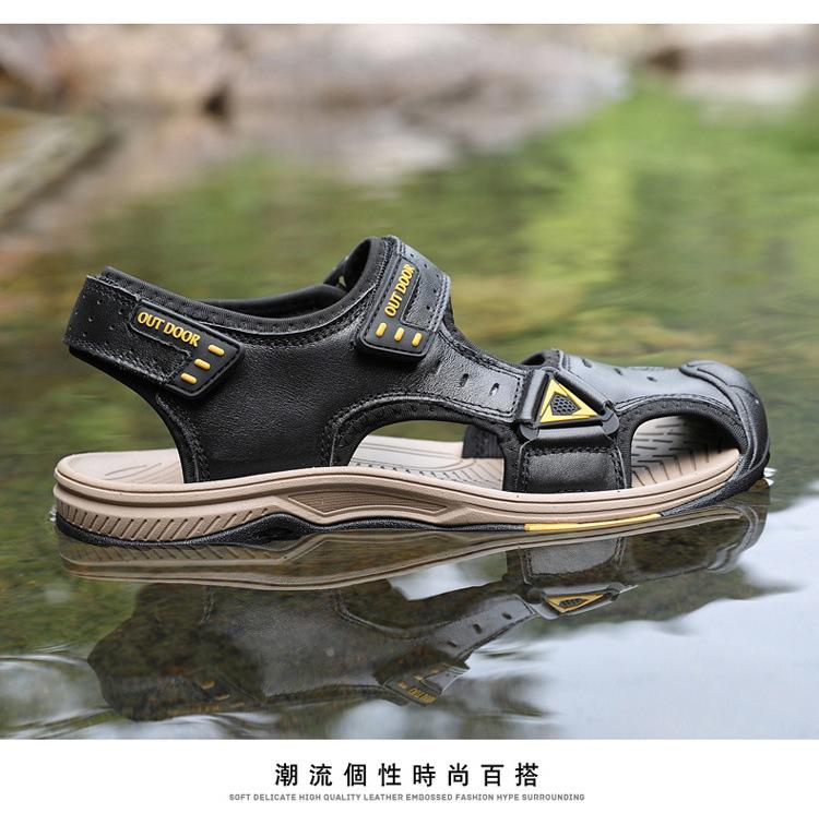 Sandalias Clásicas de Comercio Exterior Transfronterizo Sandalias y Pantuflas de Cuero Genuino para Hombre Zapatos Casuales para Exterior Verano Transpirables Talla Grande Zapatos de Hombre