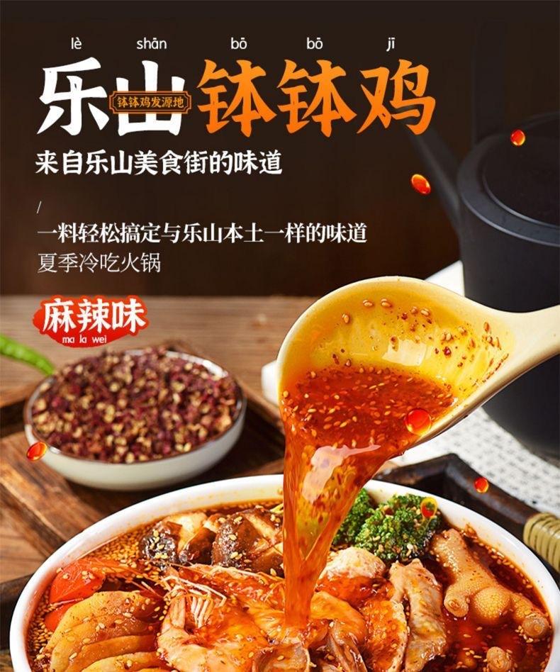 Sazonador de Pollo en Tazón de Aceite Rojo Brochetas Frías Olla Fría Brochetas Base Picante Sazonador Leshan Sabor Picante Sabor Pimienta de Vid 200g