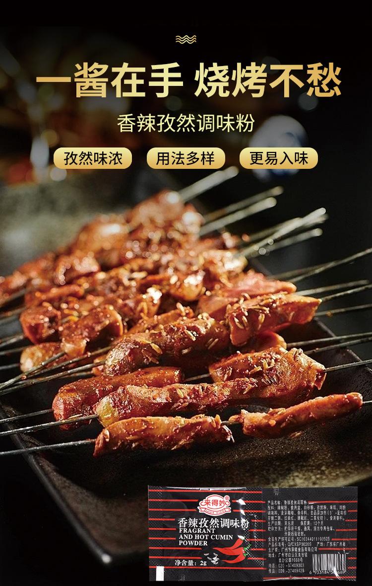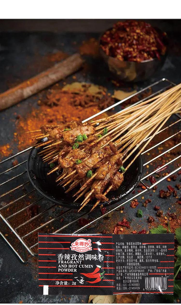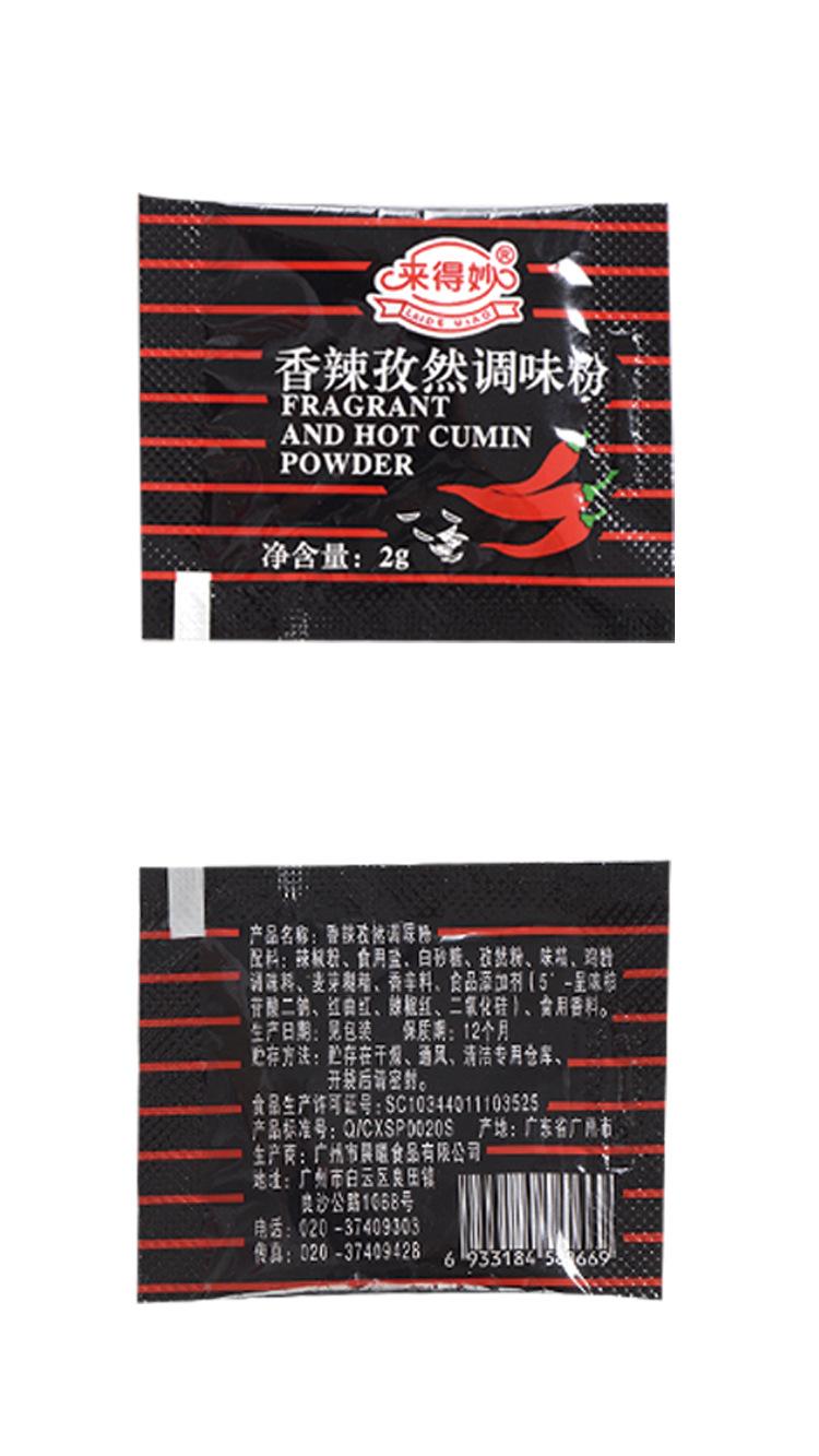 Come Miaoxiang condimento de comino picante en polvo para llevar, paquete pequeño 2G, material para barbacoa, condimento picante, material para mojar, venta al por mayor