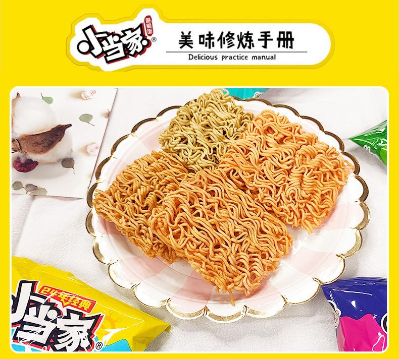 Fideos instantáneos fritos pequeños sabor mixto bolsa caja entera fideos crujientes casuales mayoreo generación de snacks