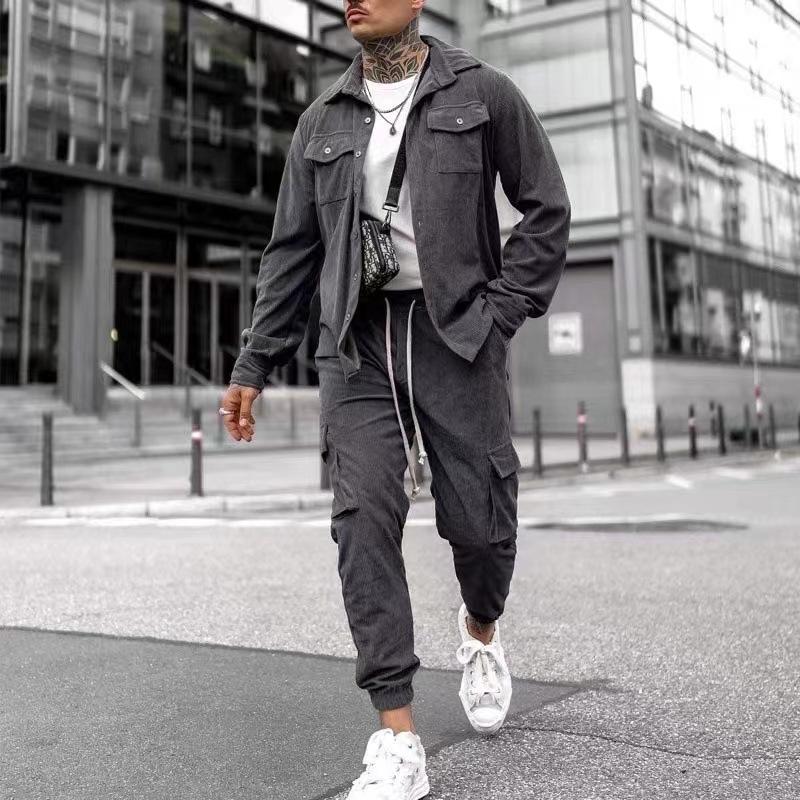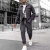 Conjunto de Ropa Deportiva para Hombre Pantalones Casuales Chaqueta de Color Sólido Corte Slim Ropa de Hombre Versátil Casual Ropa de Hombre