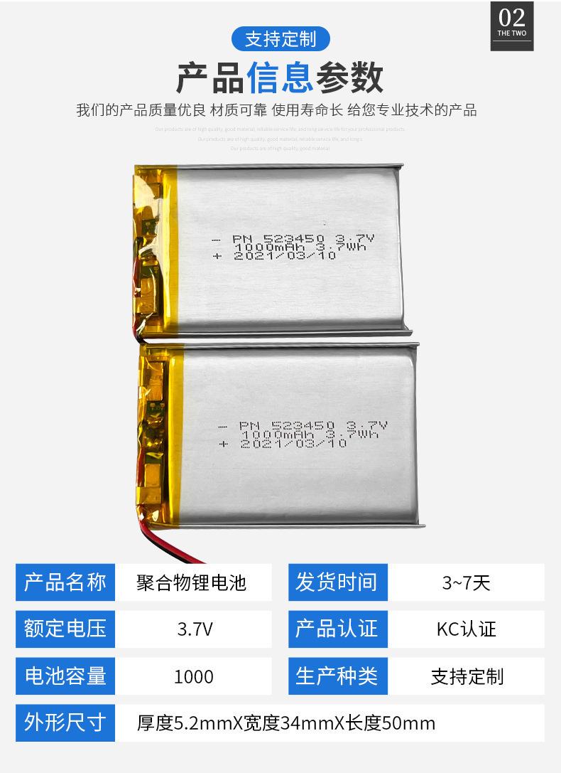 Batería de polímero de litio Bright Era 603450 de 3,7 V y 1200 mAh, recargable con espejo inteligente de fitness con IA.
