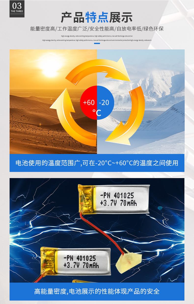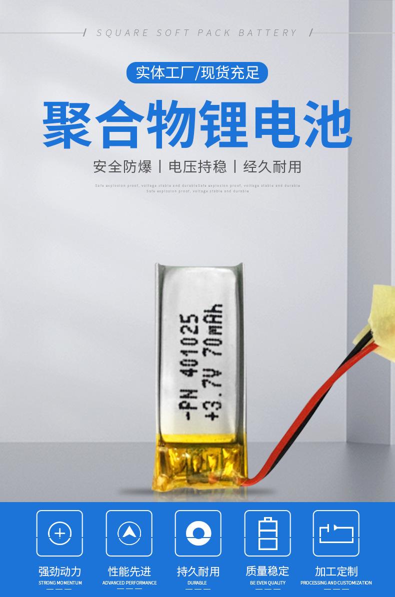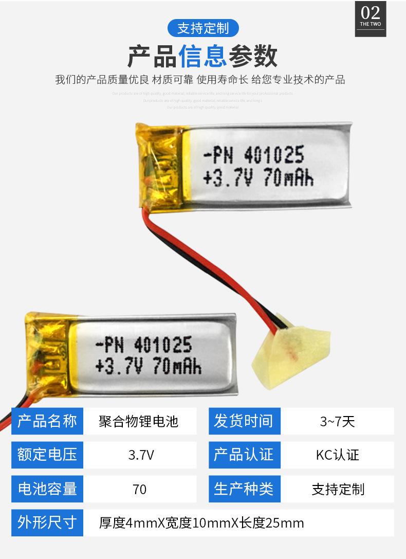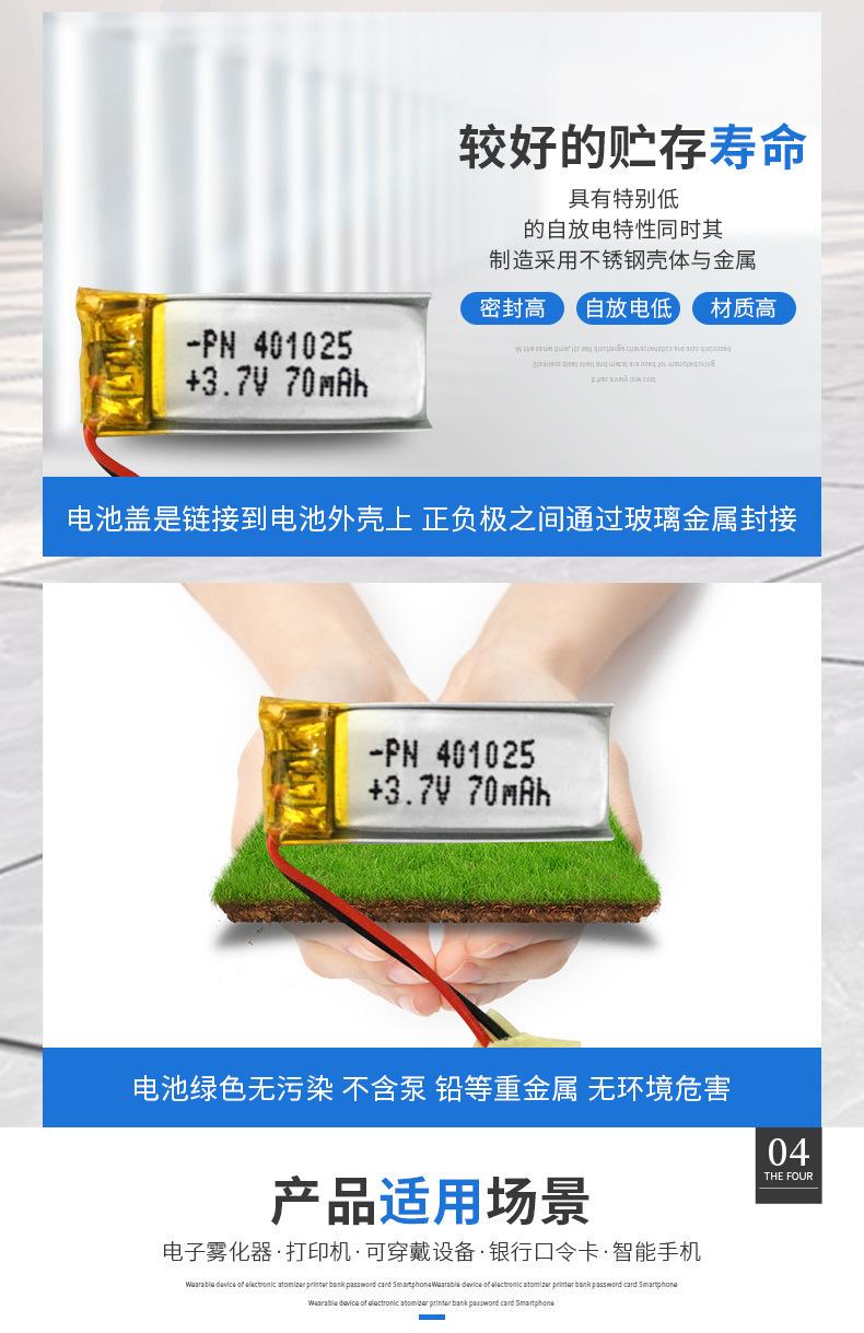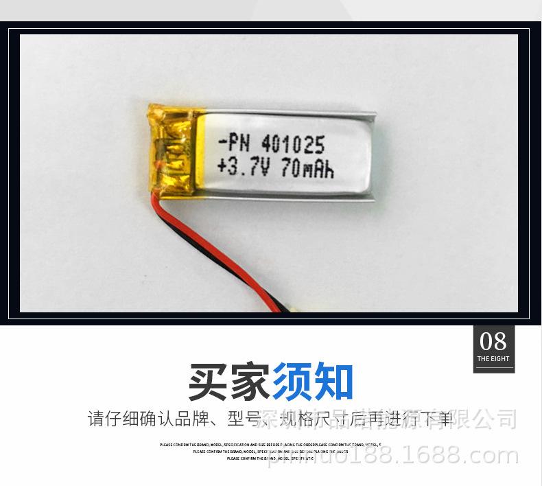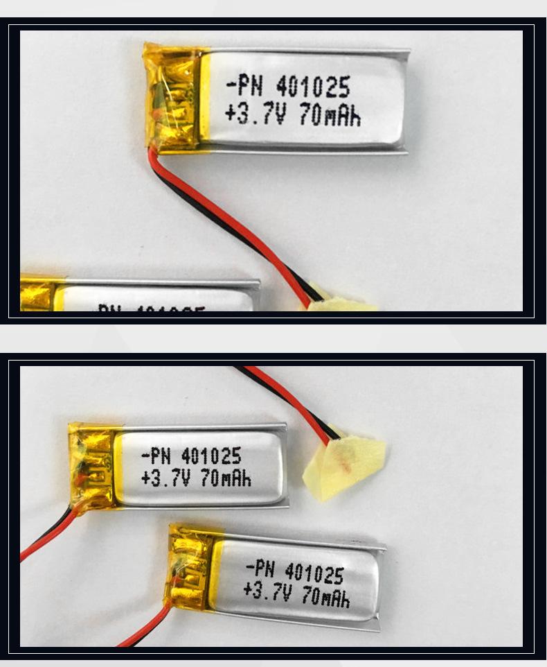 Batería de polímero de litio de 3.7V PN401025-70mAh batería de litio para audífonos bluetooth de uso inteligente