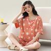 Pijama de mujer con almohadilla para el pecho, pantalones cortos de verano de manga corta con cuello redondo, ropa de casa de verano fina de modal para mujer