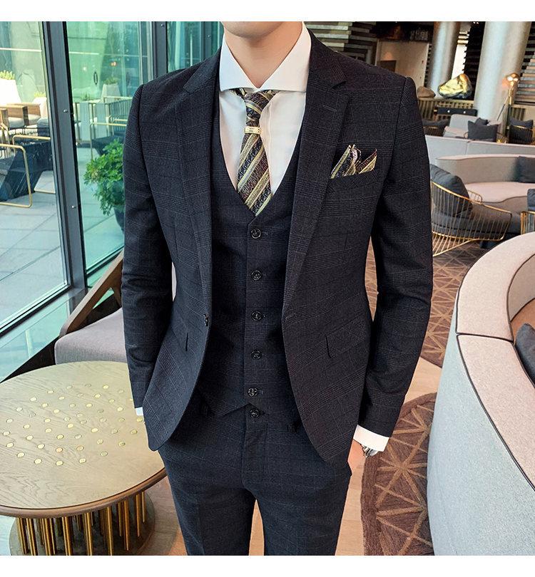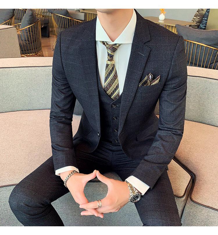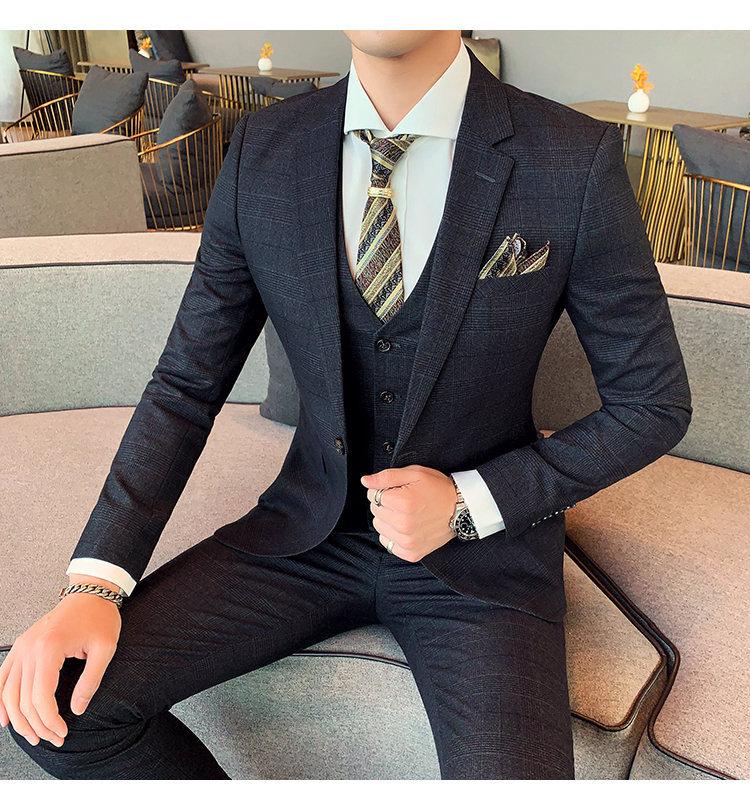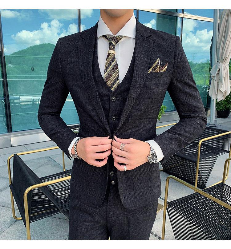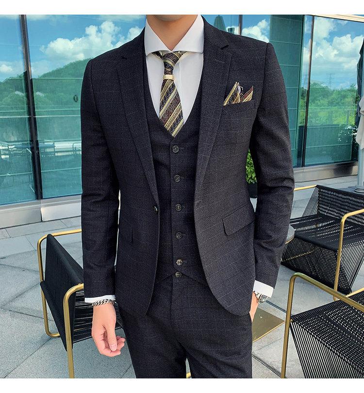 Traje de Negocios Traje para Hombre 2024 Nuevo Traje de Tres Piezas de Pata de Gallo Vestido Moda Traje Casual para Hombre