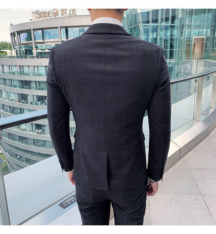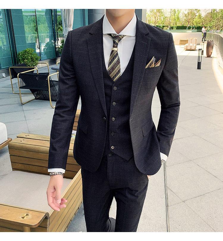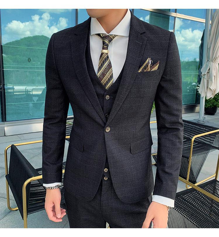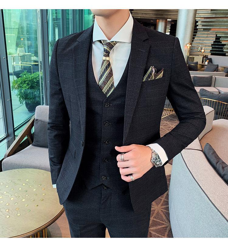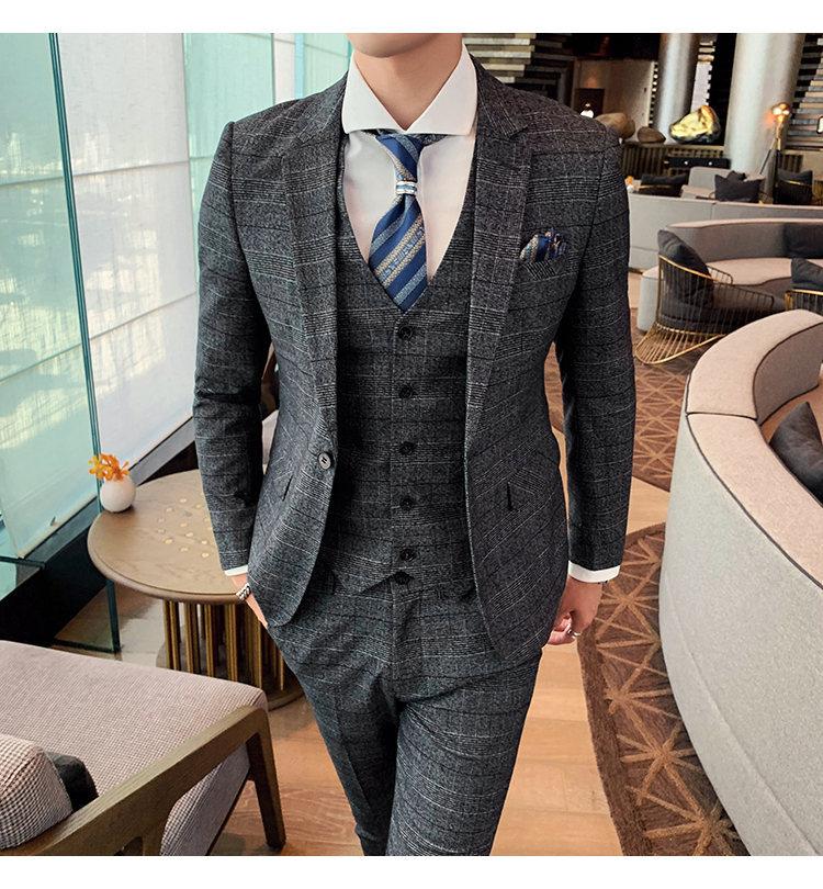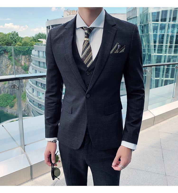 Traje de Negocios Traje para Hombre 2024 Nuevo Traje de Tres Piezas de Pata de Gallo Vestido Moda Traje Casual para Hombre