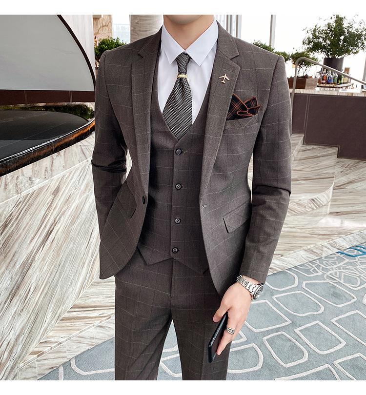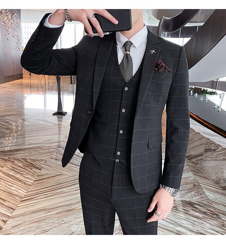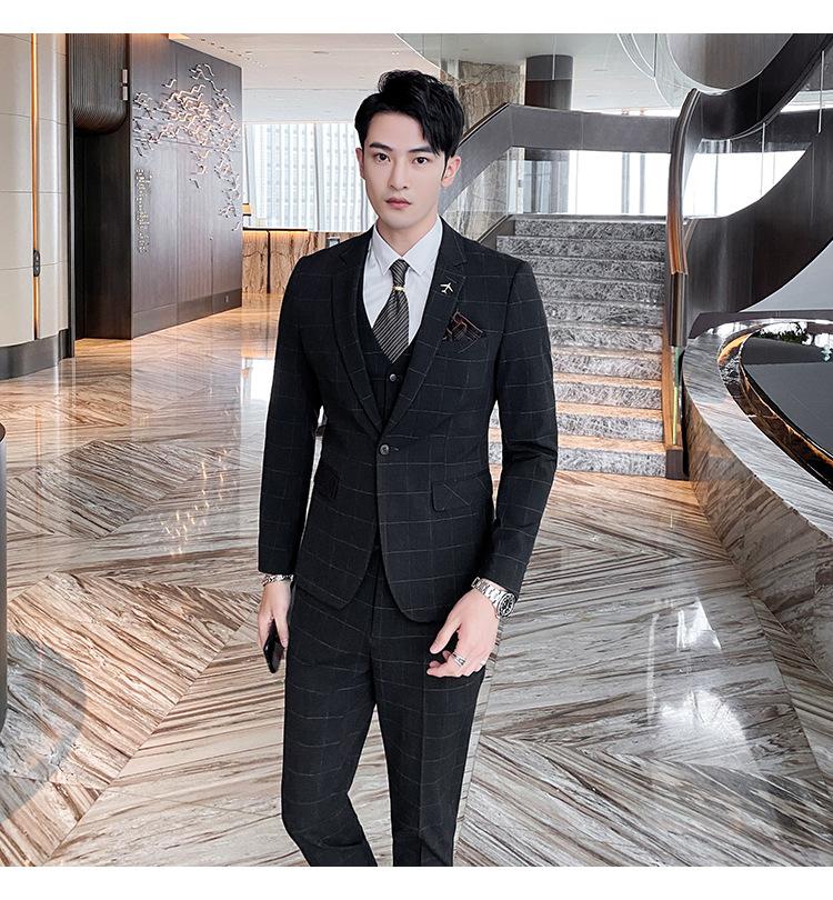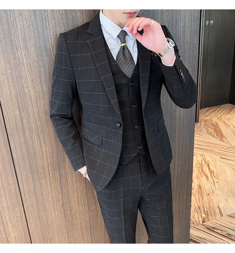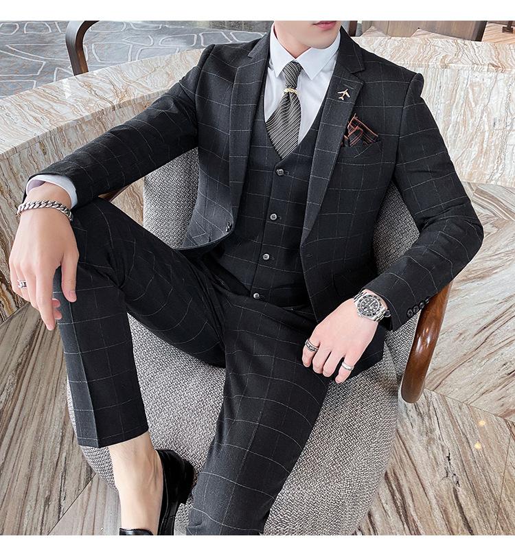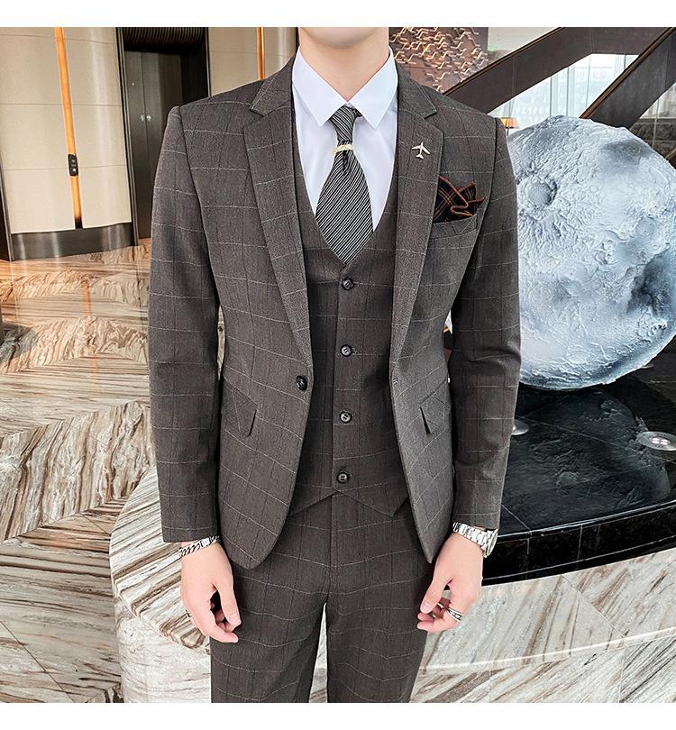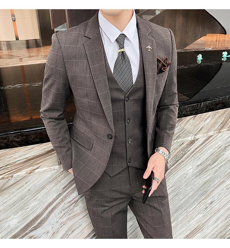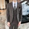 Traje de tres piezas para hombre, otoño 2023, moda juvenil coreana, traje ajustado a cuadros