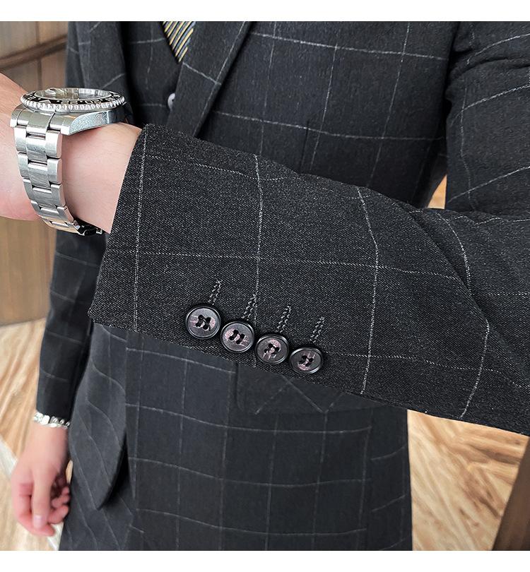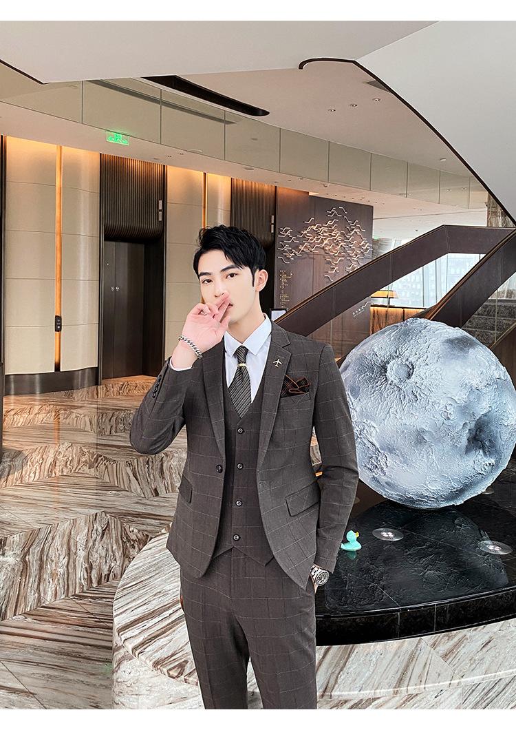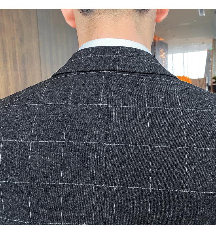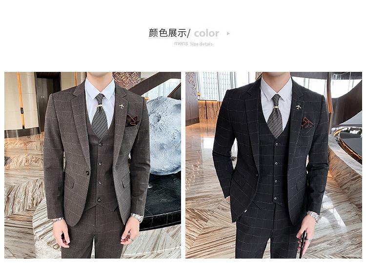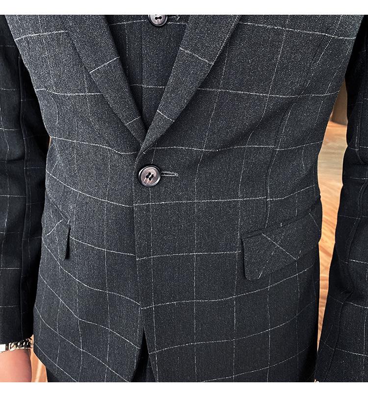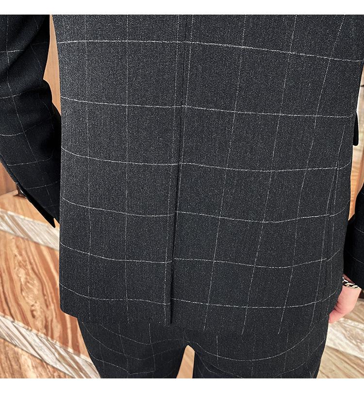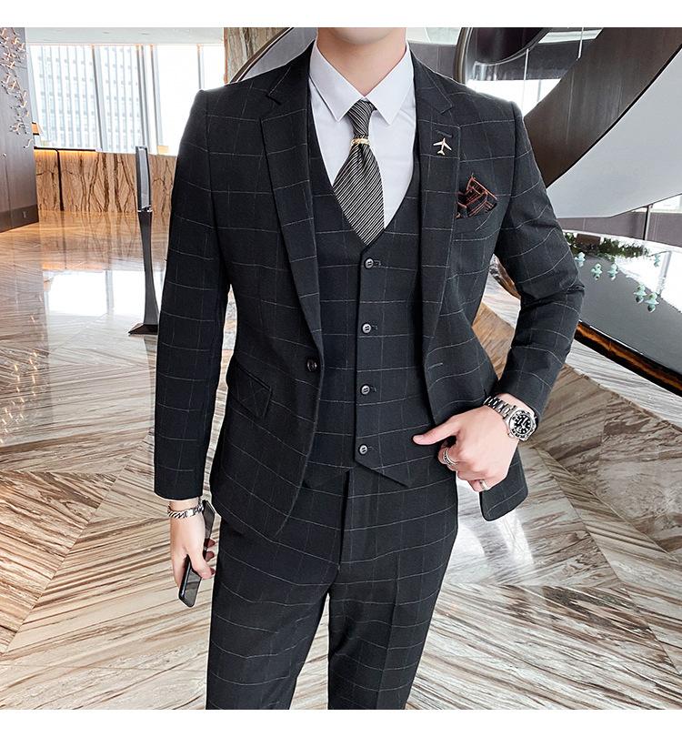 Traje de tres piezas para hombre, otoño 2023, moda juvenil coreana, traje ajustado a cuadros