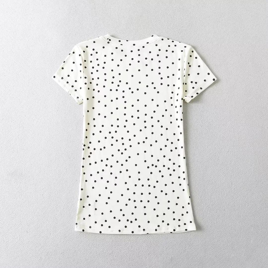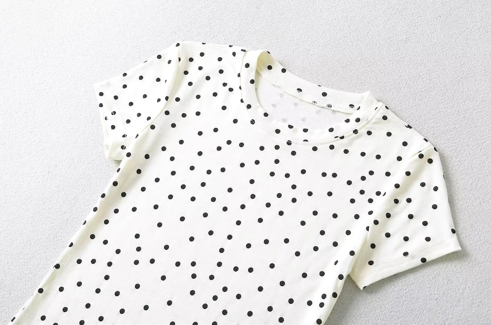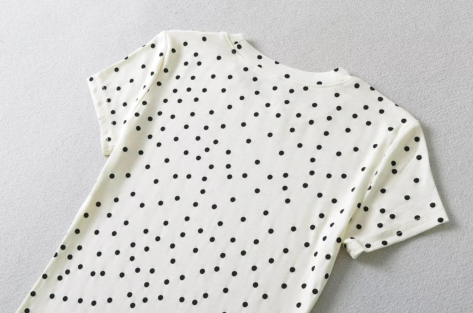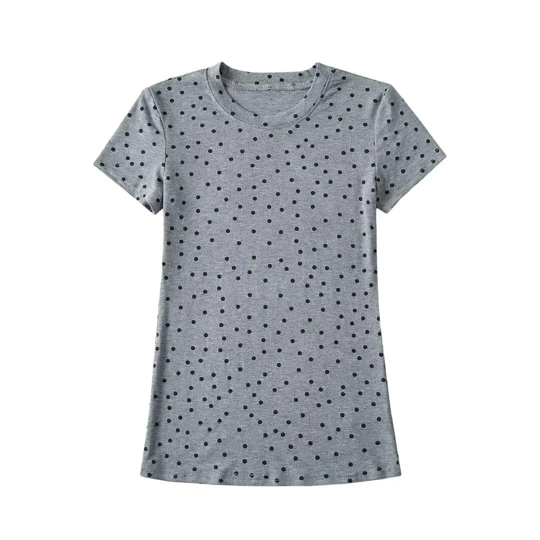 Camiseta de manga corta con cuello redondo y lunares de Niche Design para mujer, novedad de verano 2024, top adelgazante de moda que combina con todo y con los hombros al descubierto.