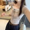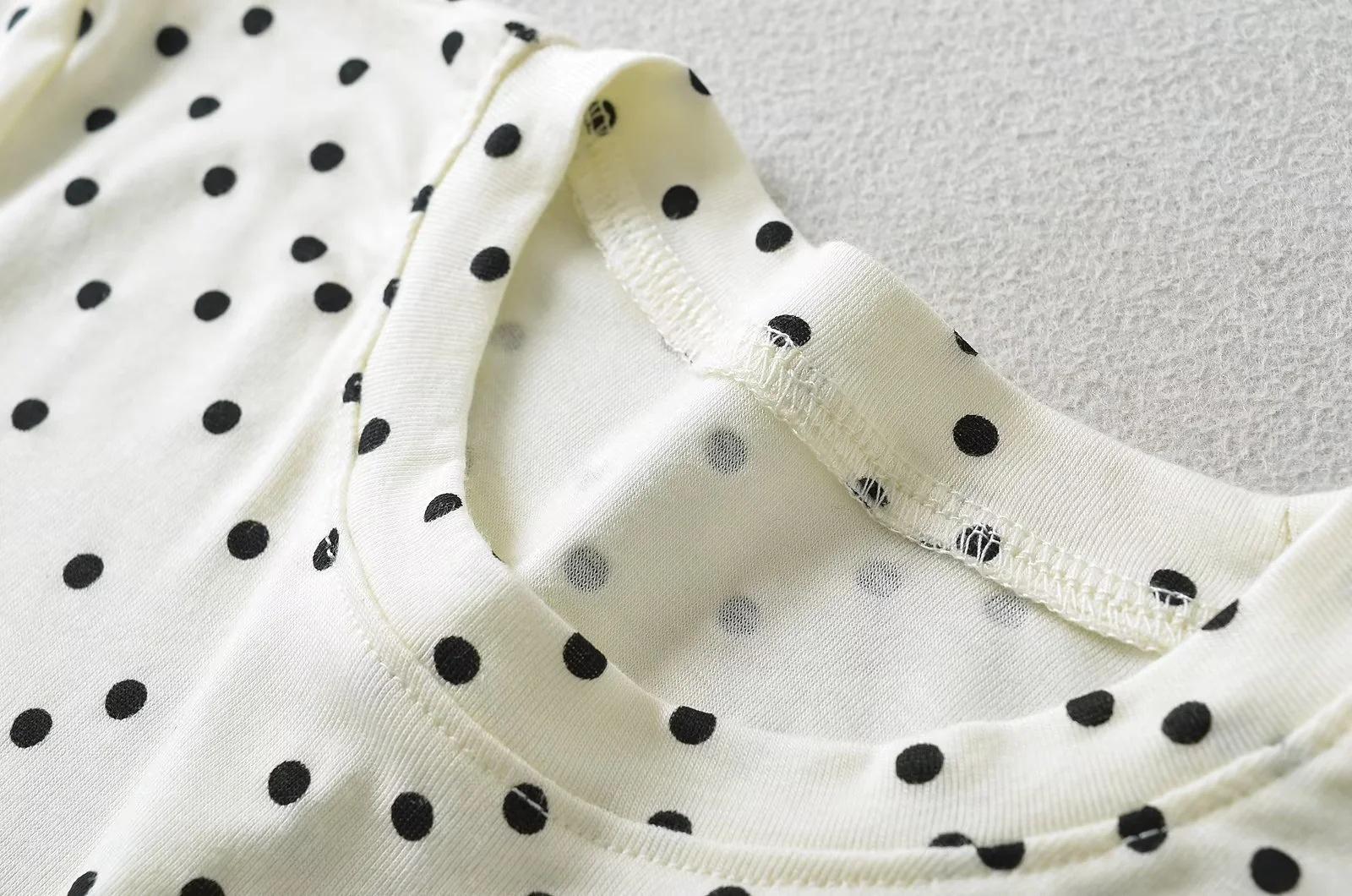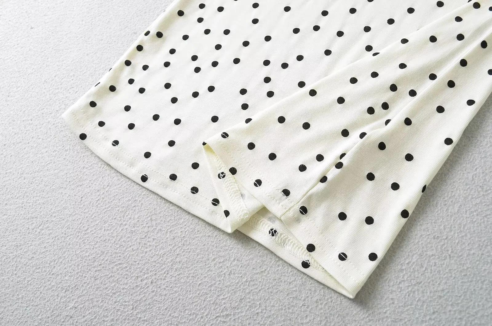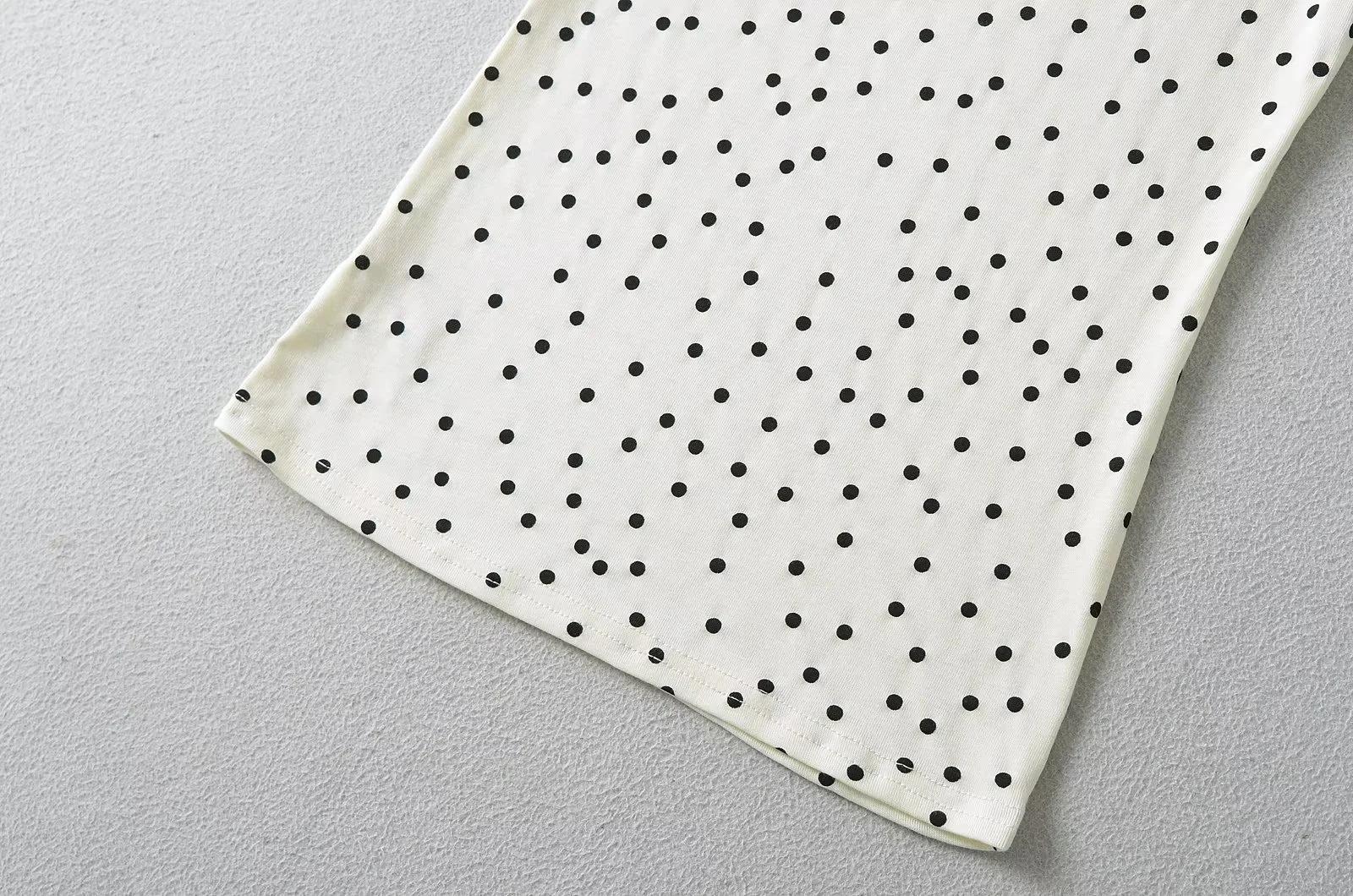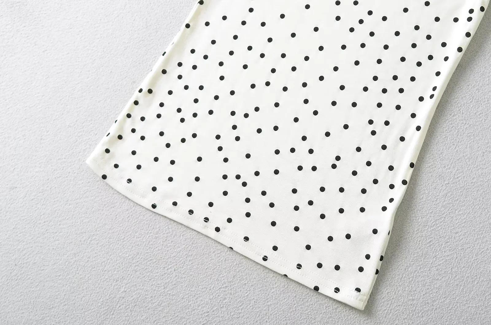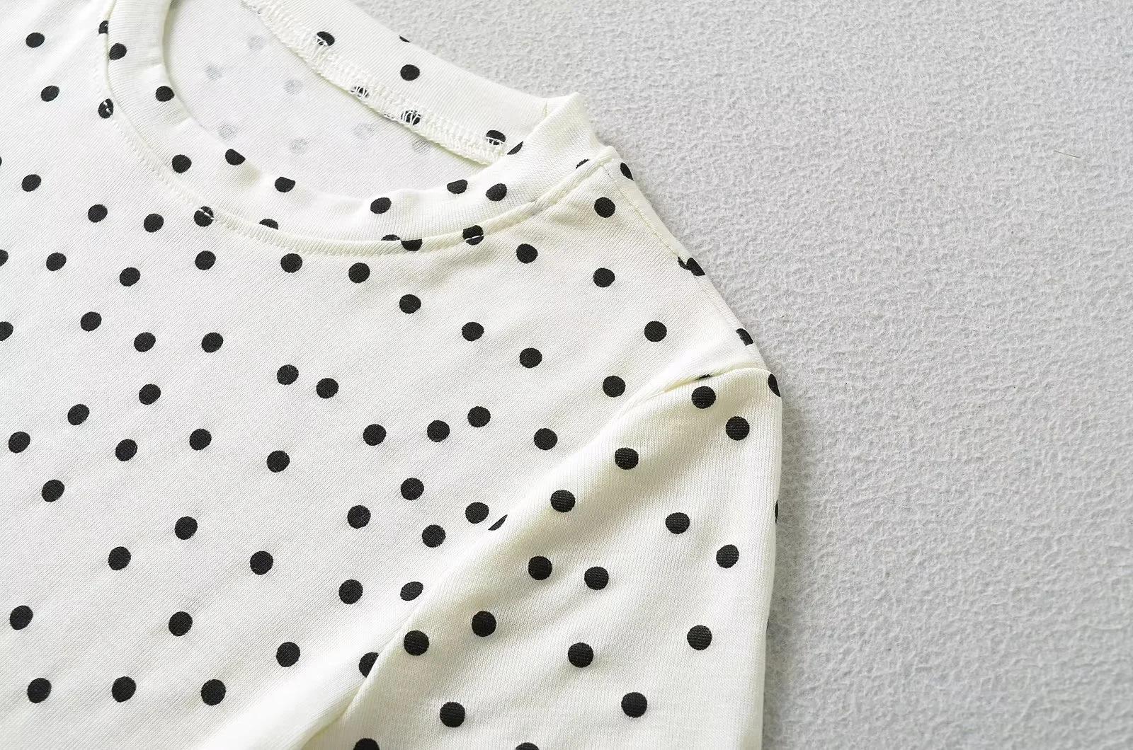 Camiseta de manga corta con cuello redondo y lunares de Niche Design para mujer, novedad de verano 2024, top adelgazante de moda que combina con todo y con los hombros al descubierto.