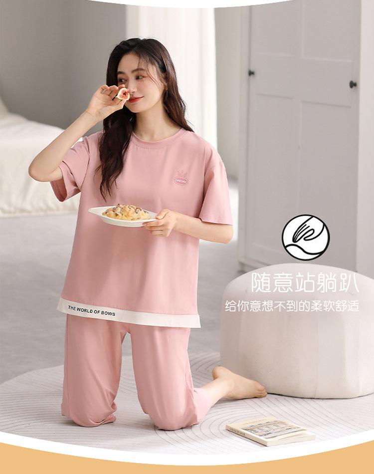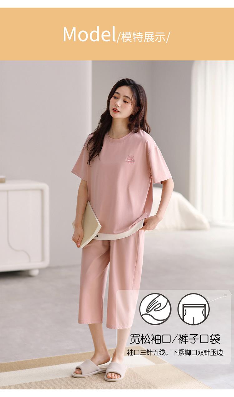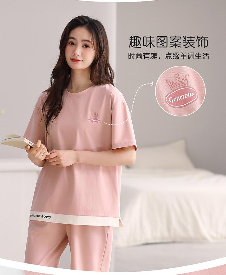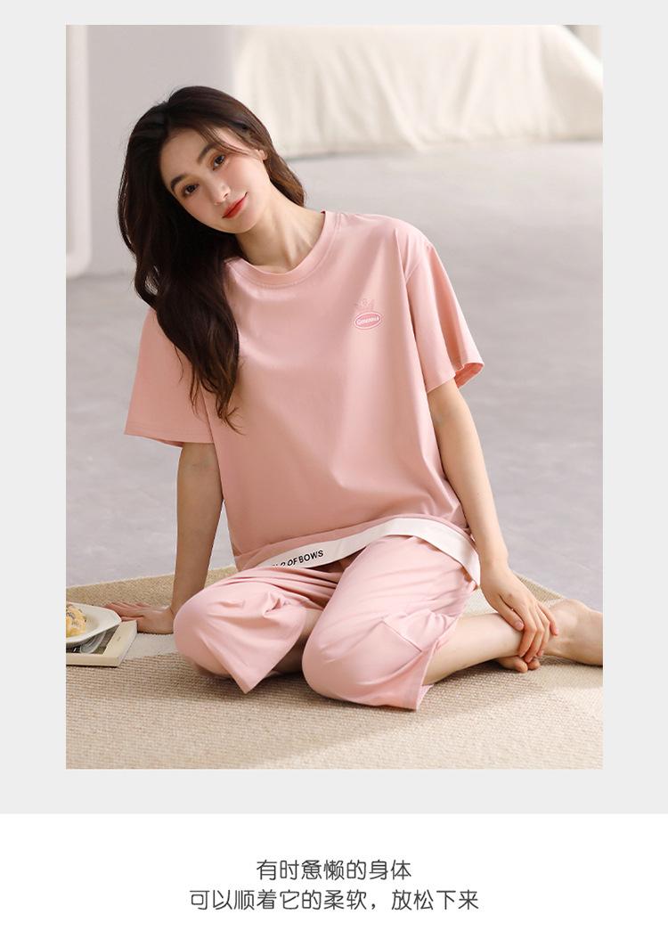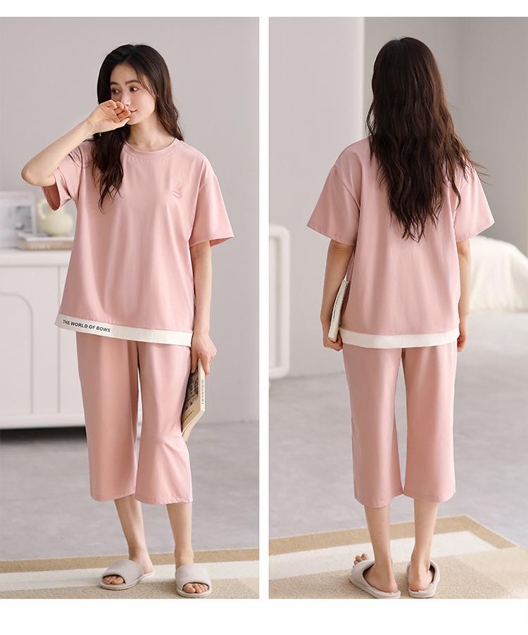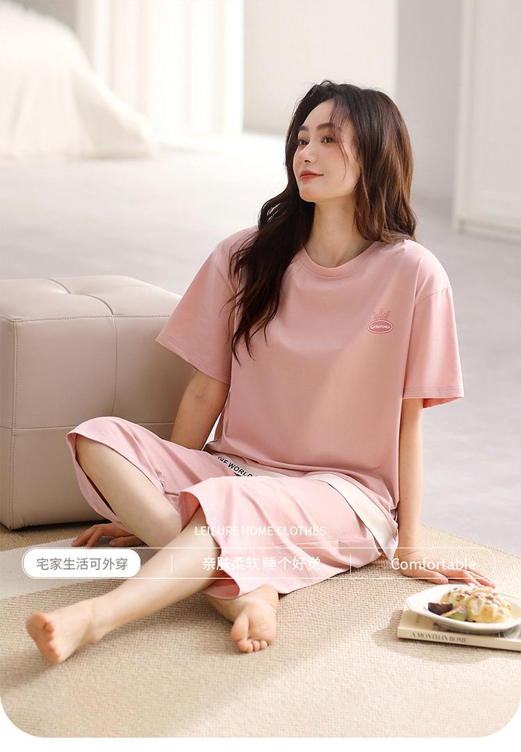 Pijama informal de verano para mujer, de algodón puro, de manga corta, fino, para uso en el hogar