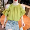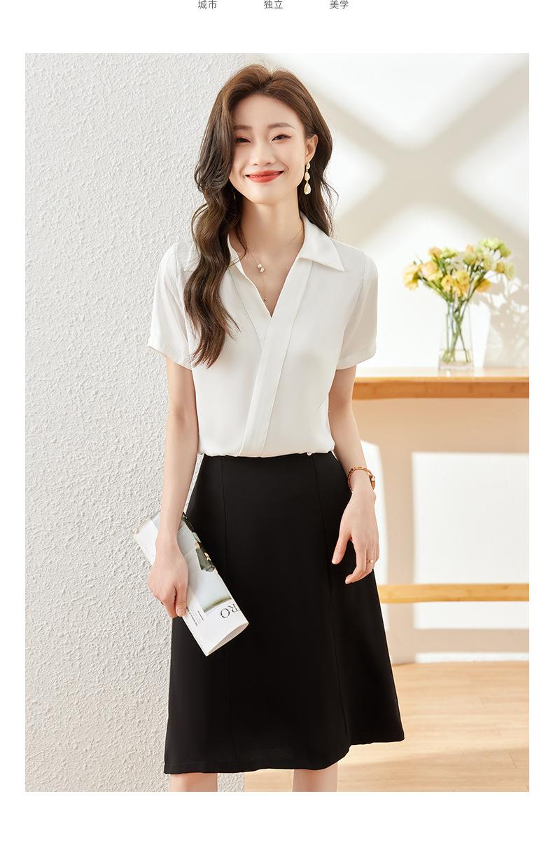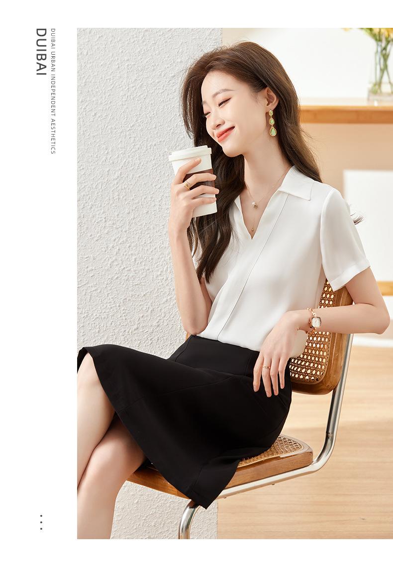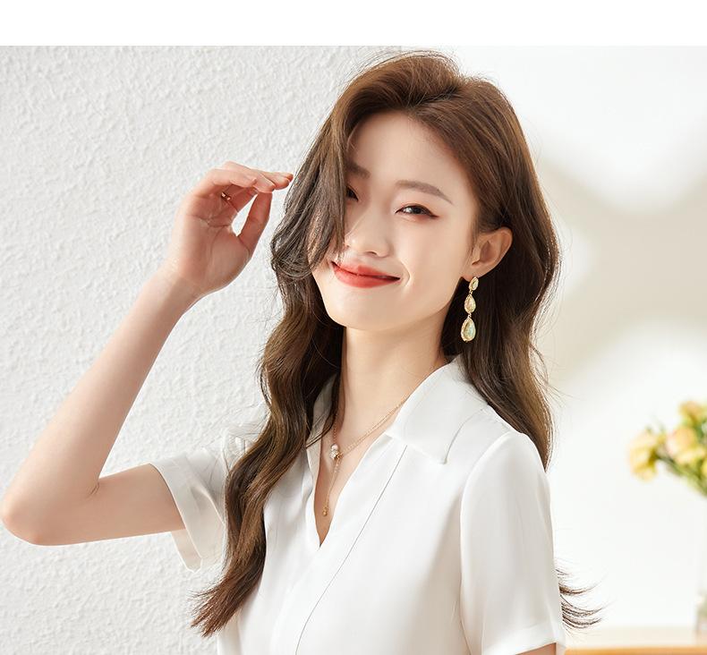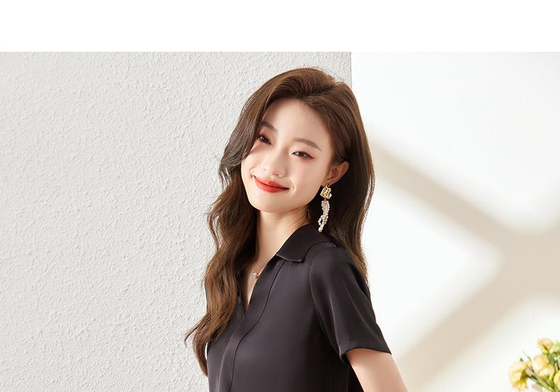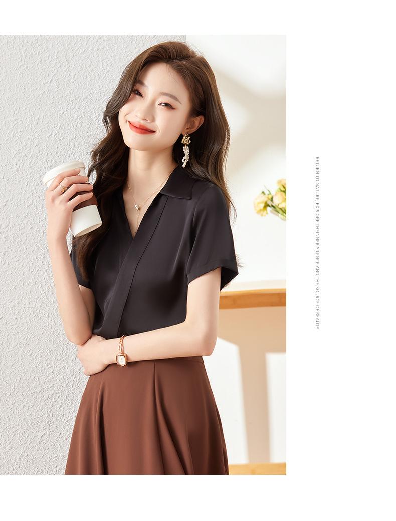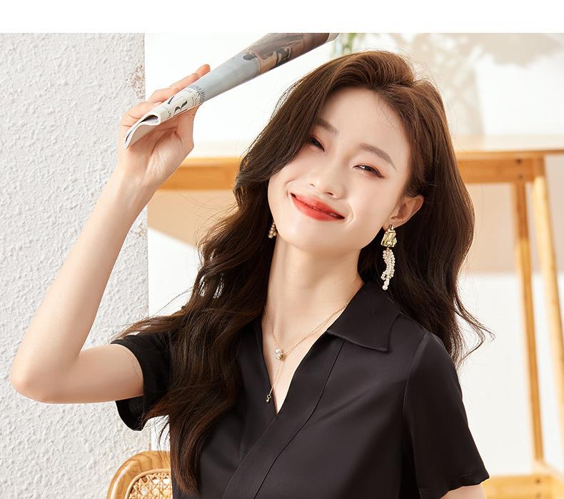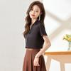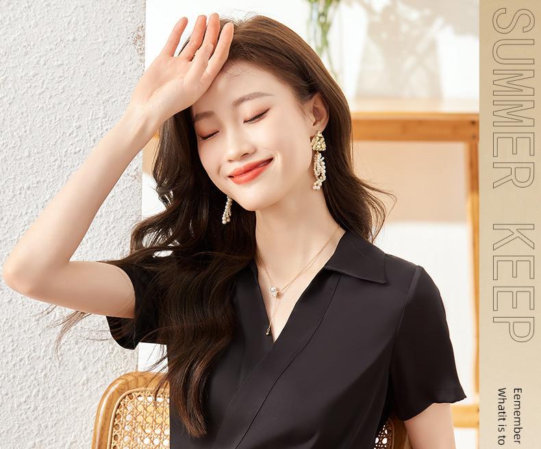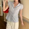 Camisa Hermosa Estilo Occidental para Mujer Manga Corta Verano Nueva Moda Camisa Drapeada Delgada Adelgazante Top para Viajera Estilo Suave