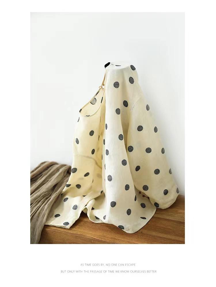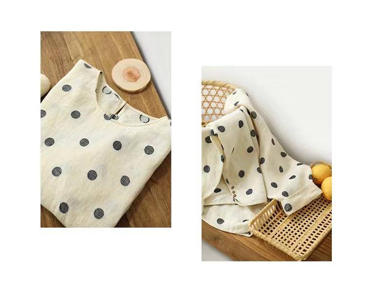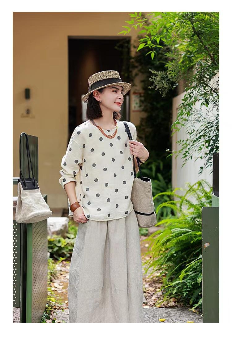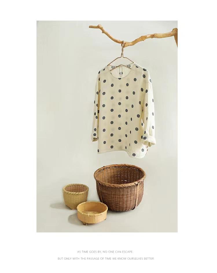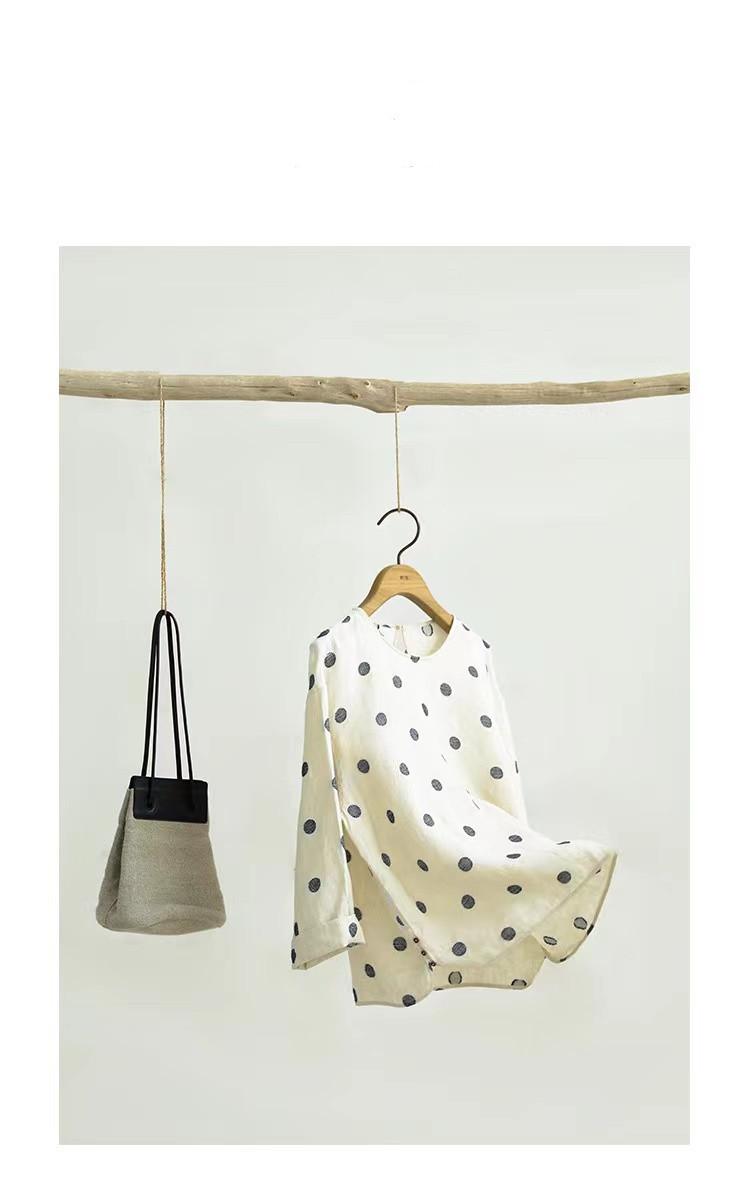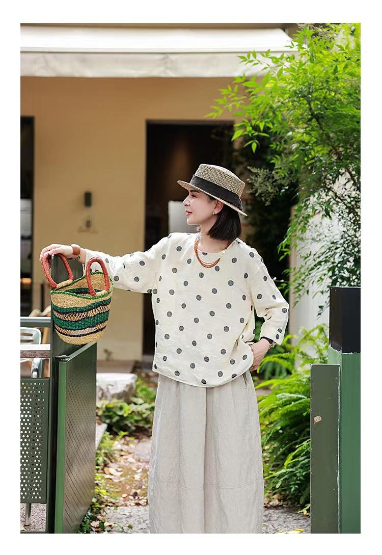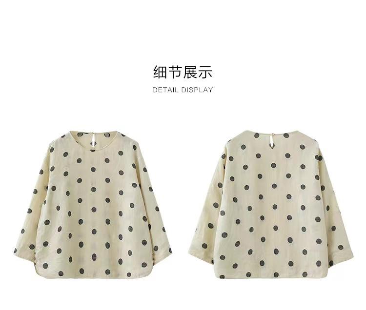 Nueva camiseta de manga larga con cuello redondo y estampado de lunares de otoño