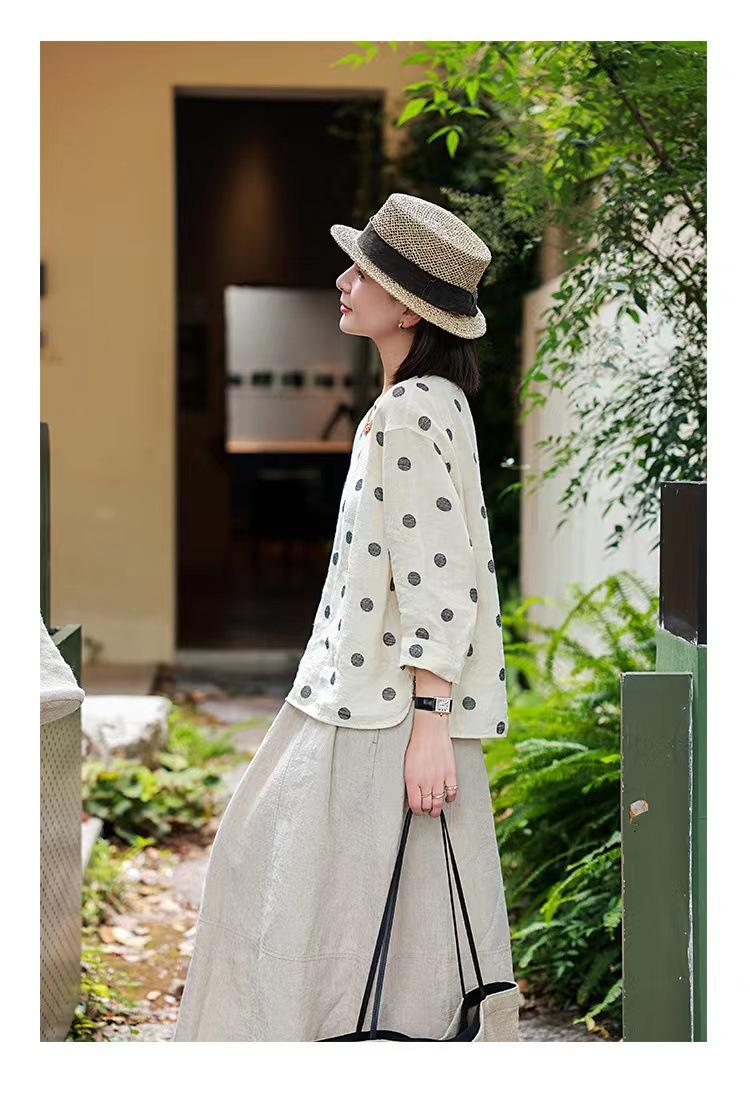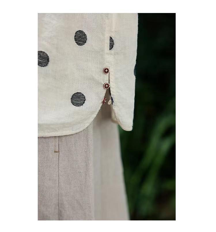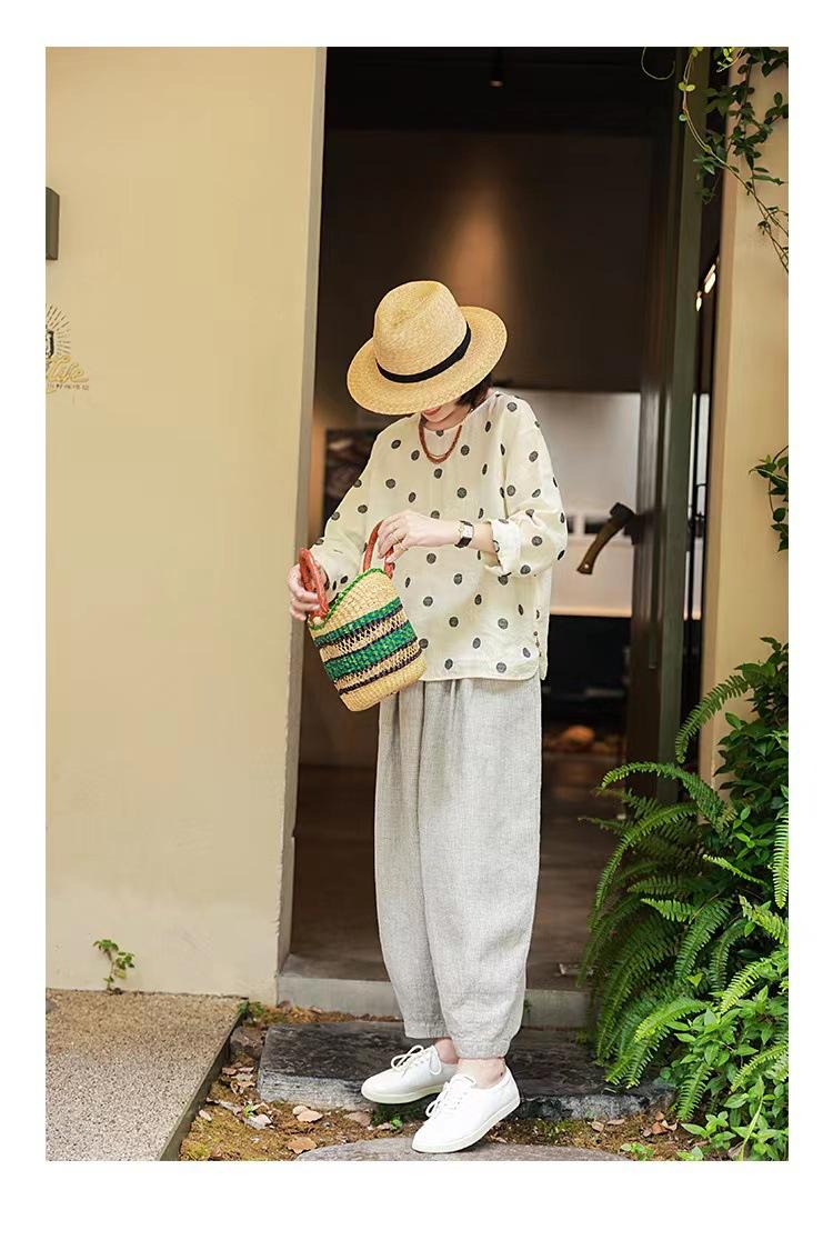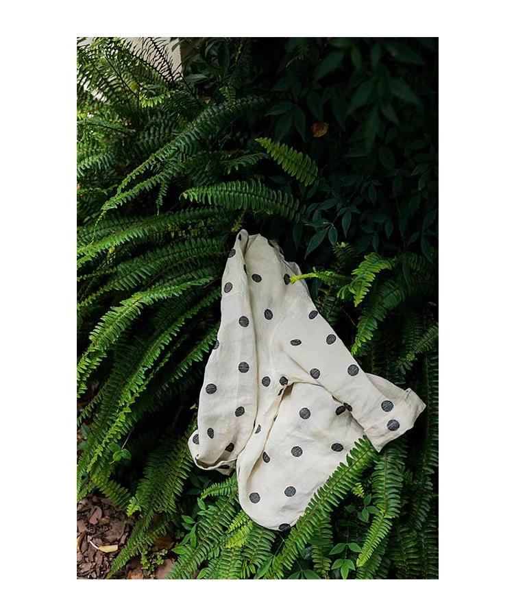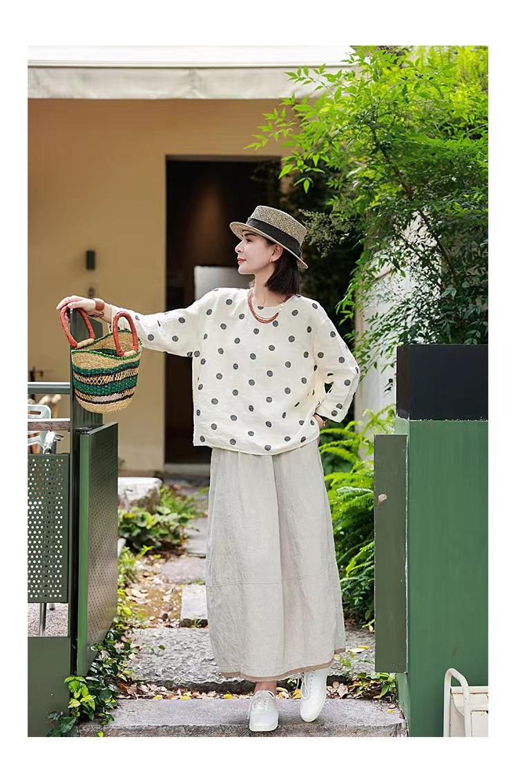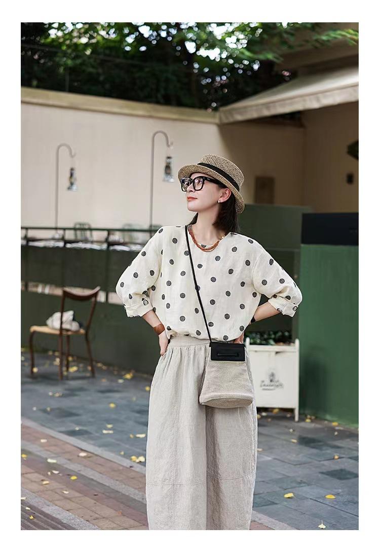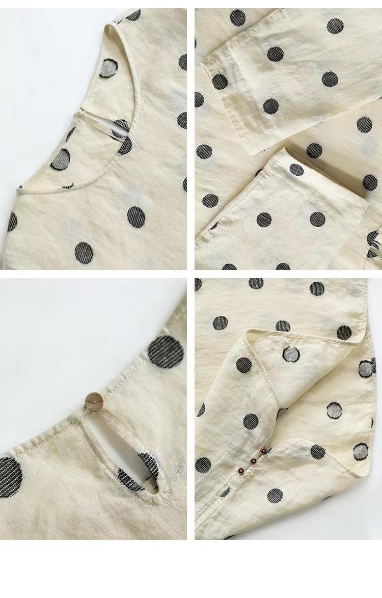 Nueva camiseta de manga larga con cuello redondo y estampado de lunares de otoño