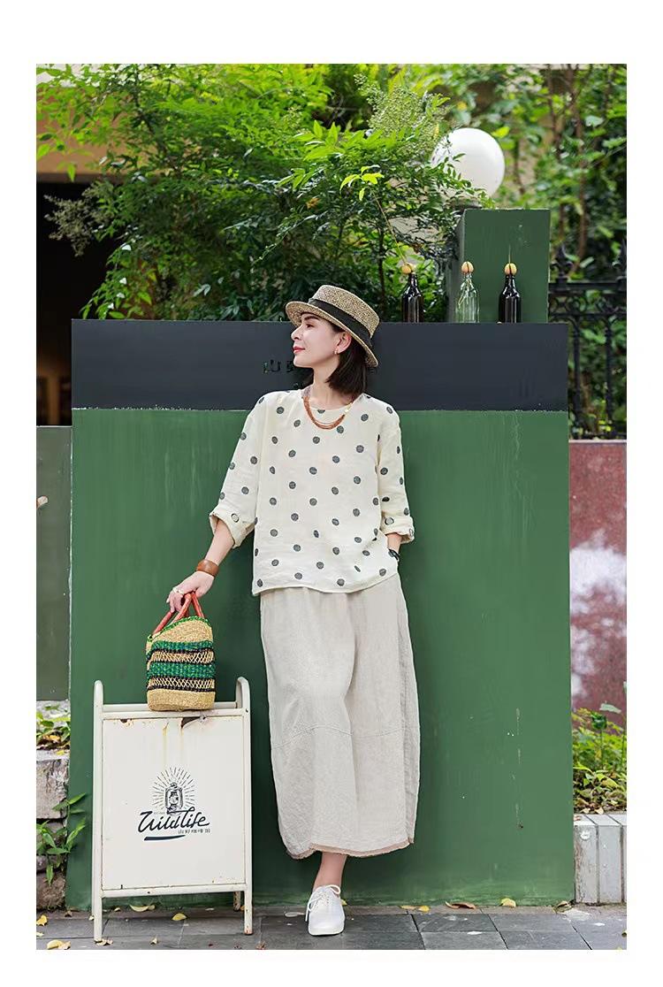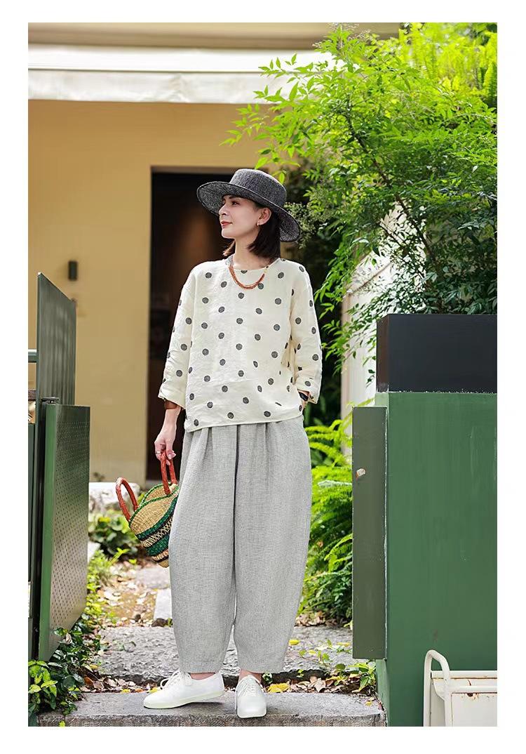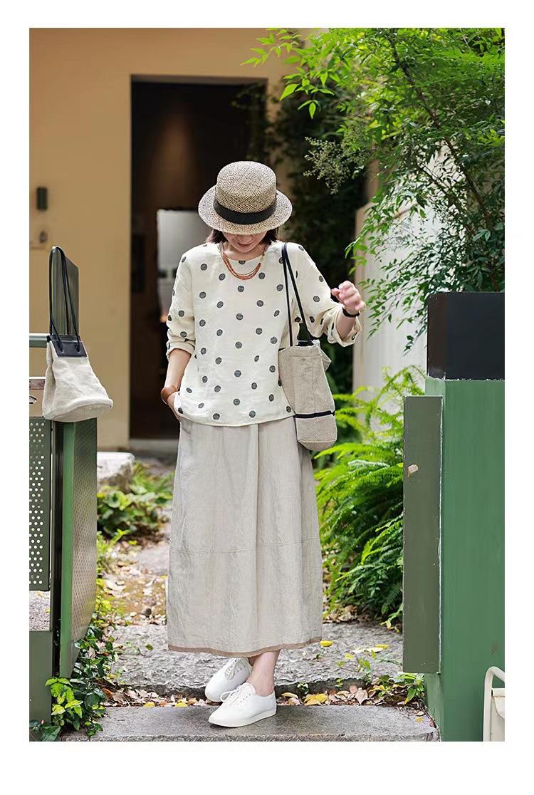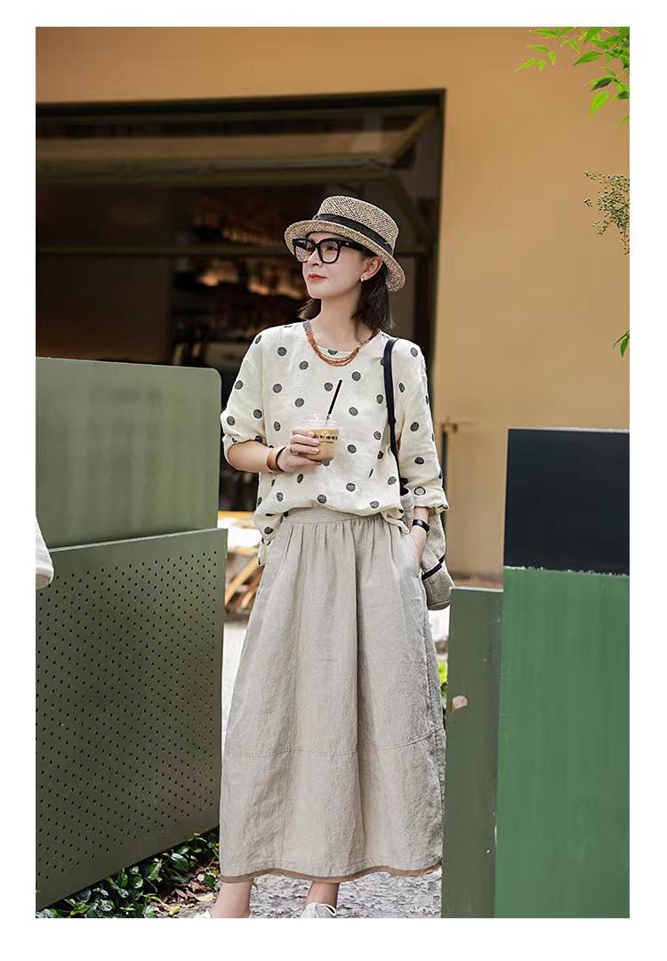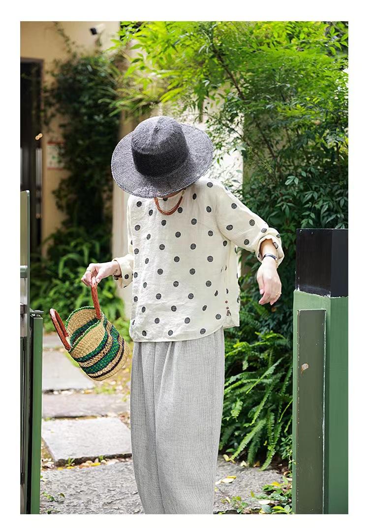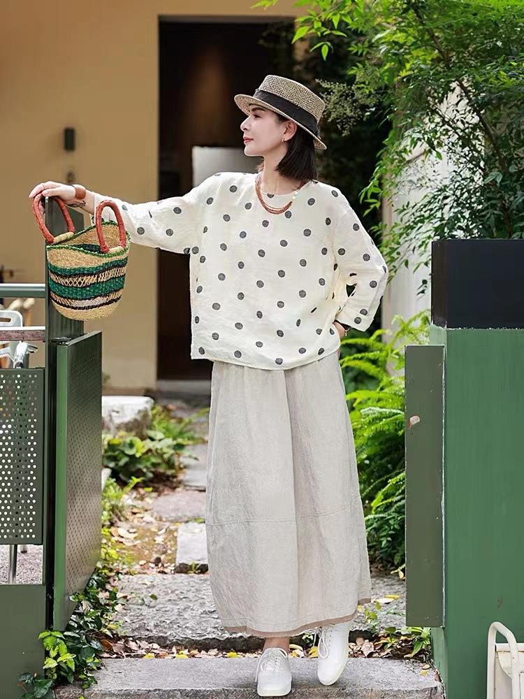 Nueva camiseta de manga larga con cuello redondo y estampado de lunares de otoño