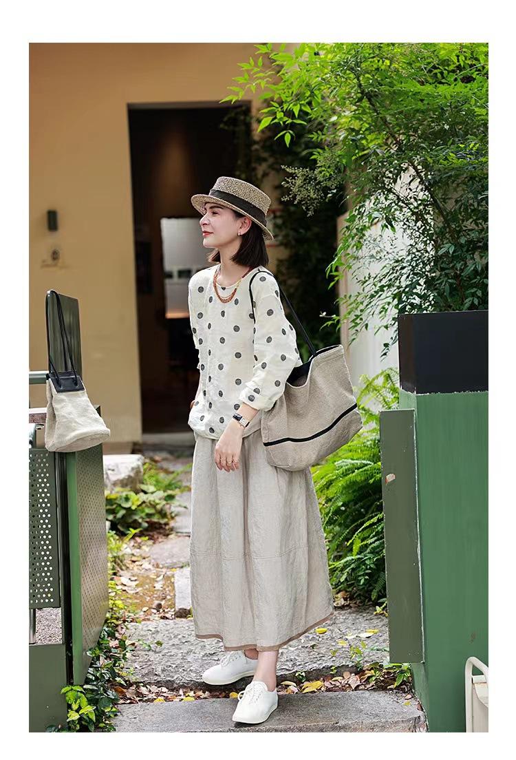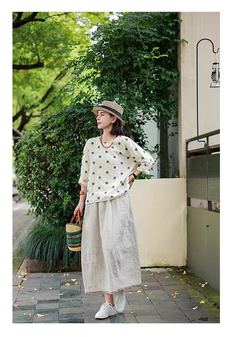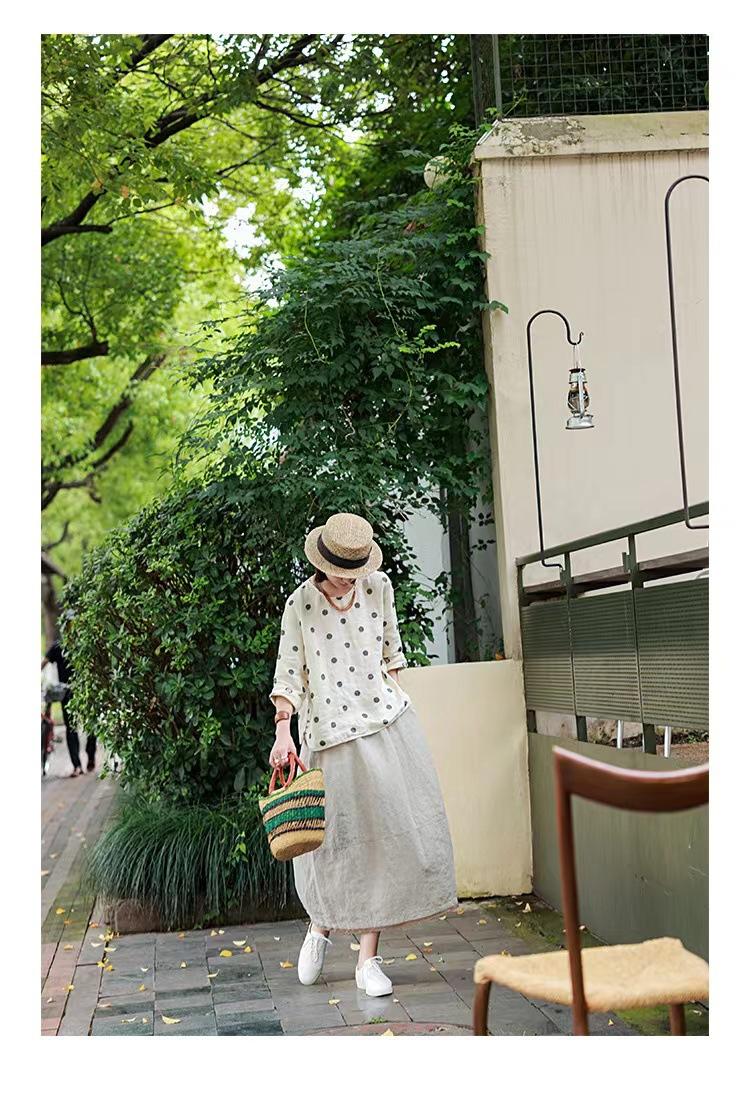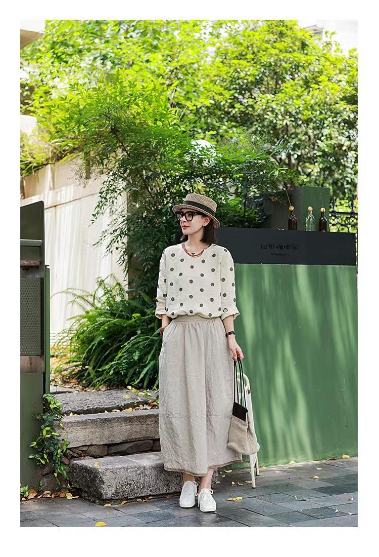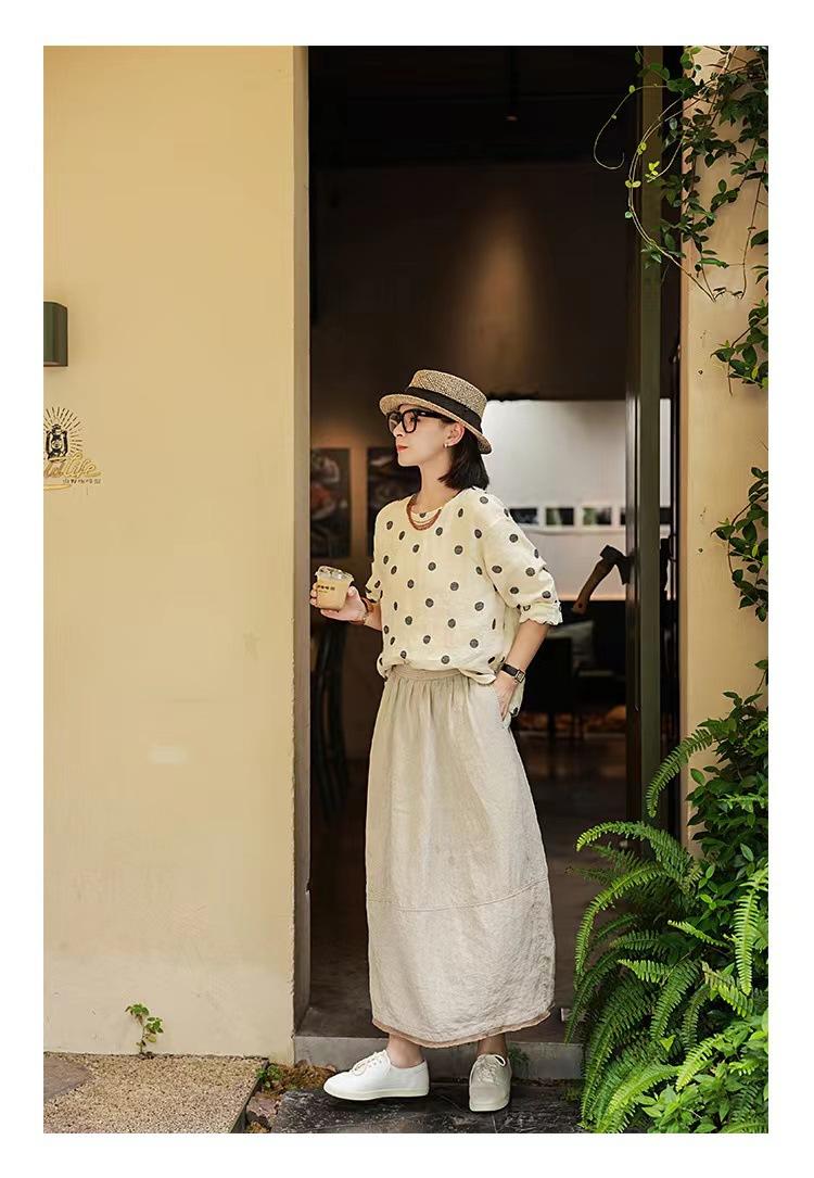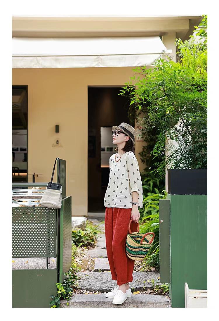 Nueva camiseta de manga larga con cuello redondo y estampado de lunares de otoño