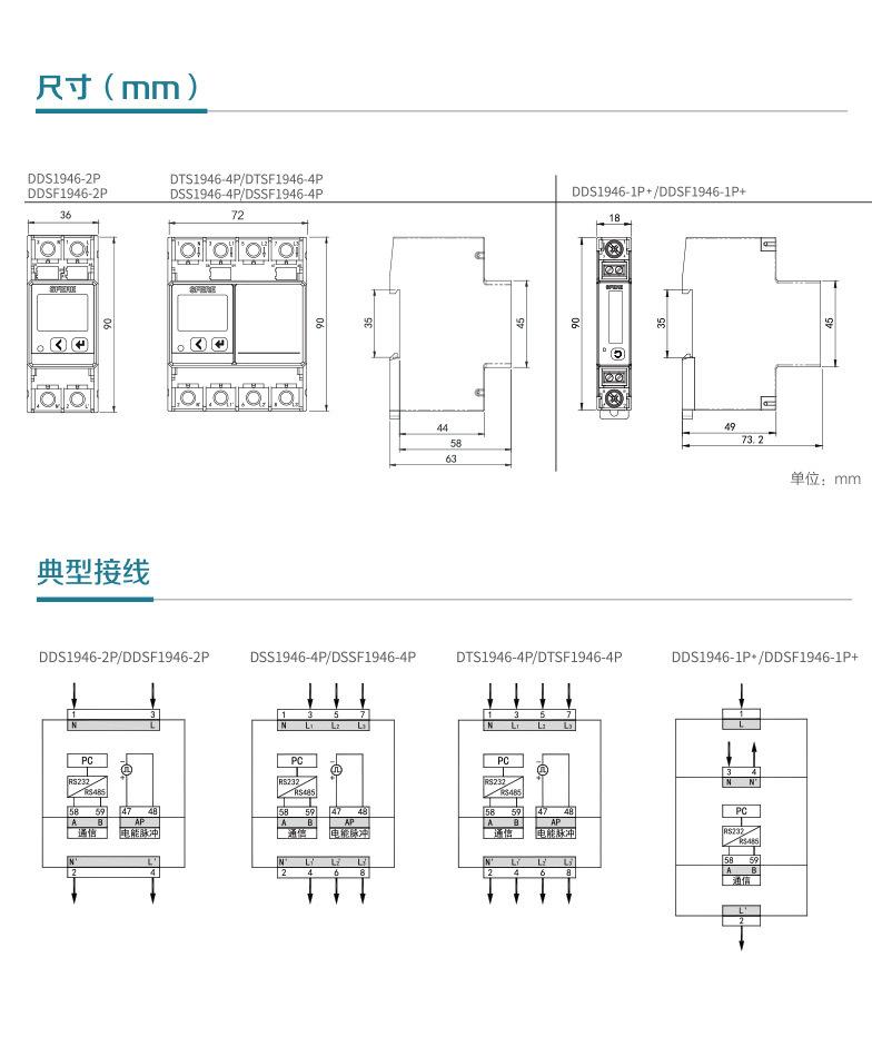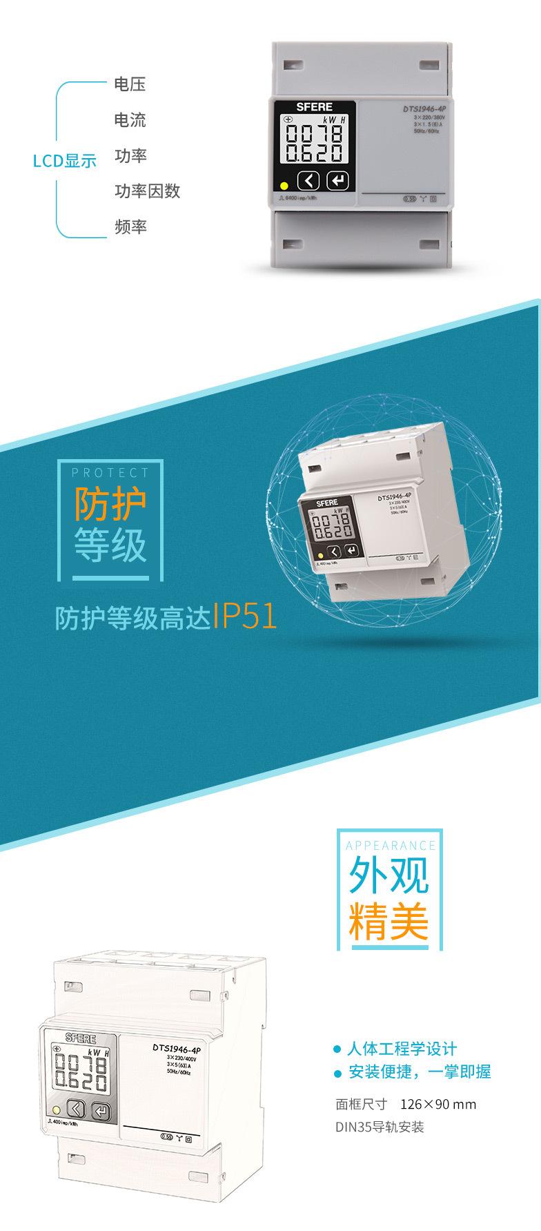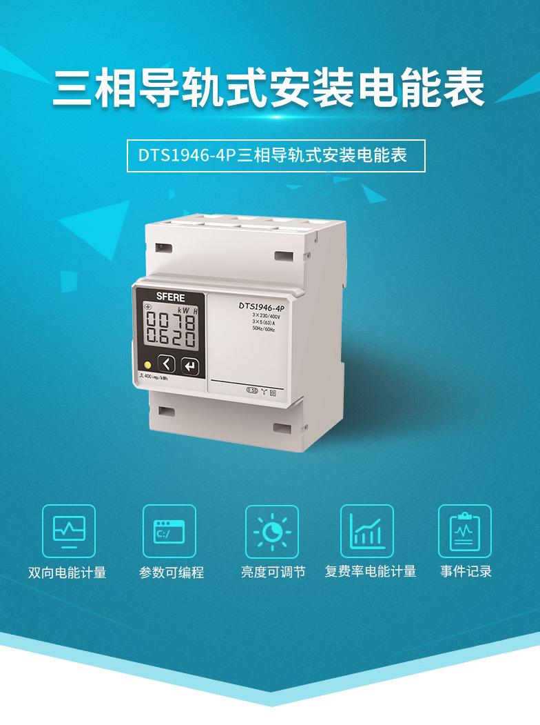Medidor de energía inteligente para instalación en riel de cuatro cables trifásico Sfield Electric Sfere DTS1946-4P