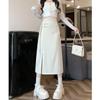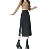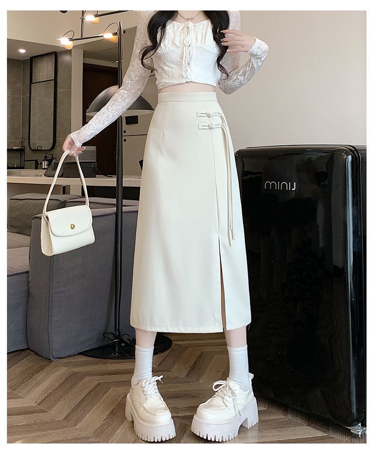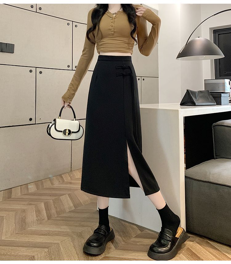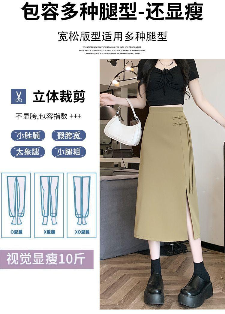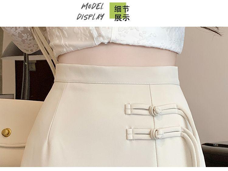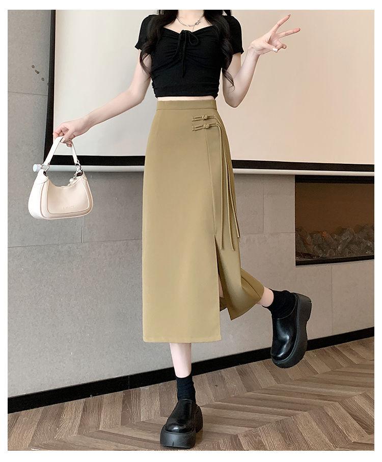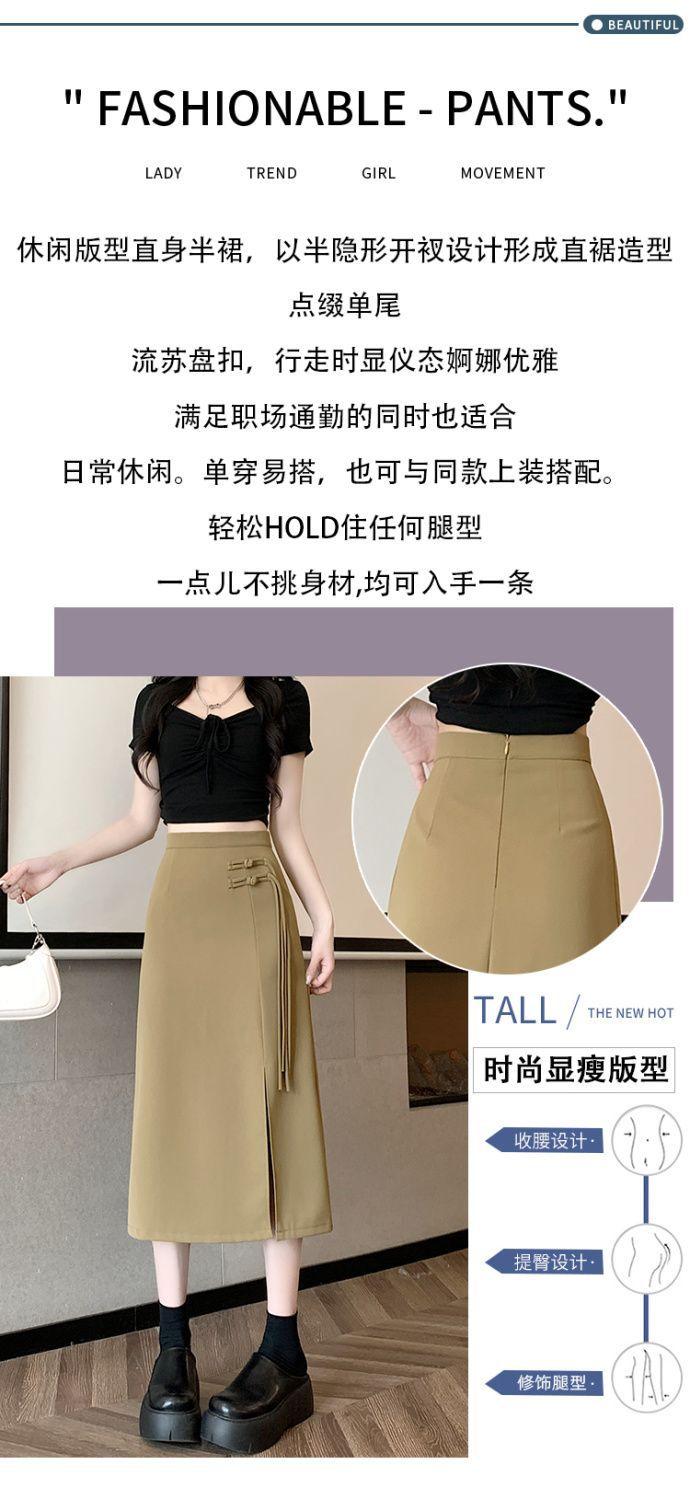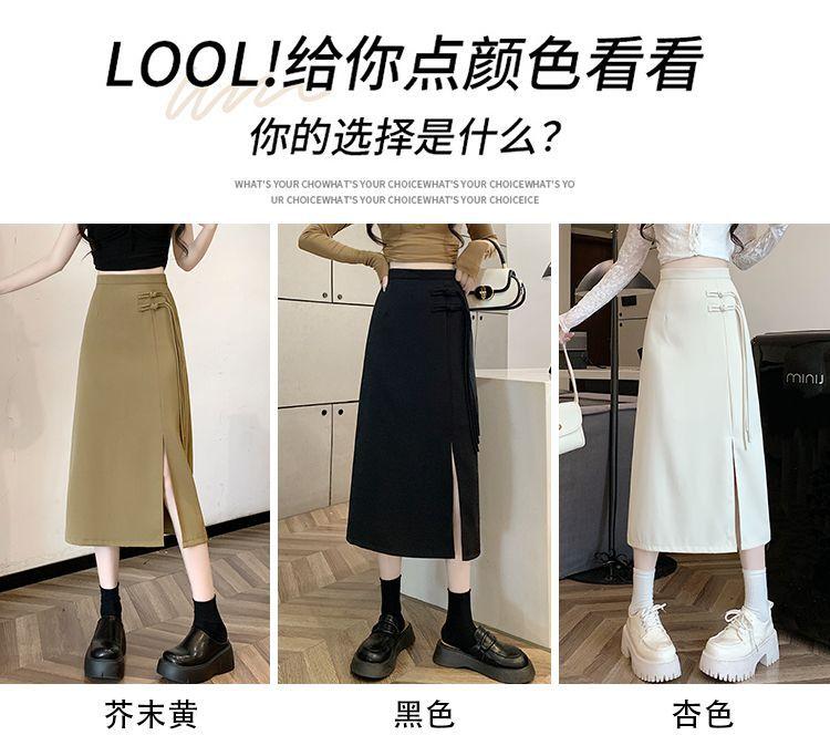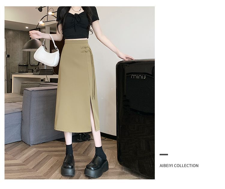 Falda de verano para mujer, estilo chino, estilo nacional, con abertura, longitud media, cintura alta, nueva falda de cadera con hebilla, línea A, 2024