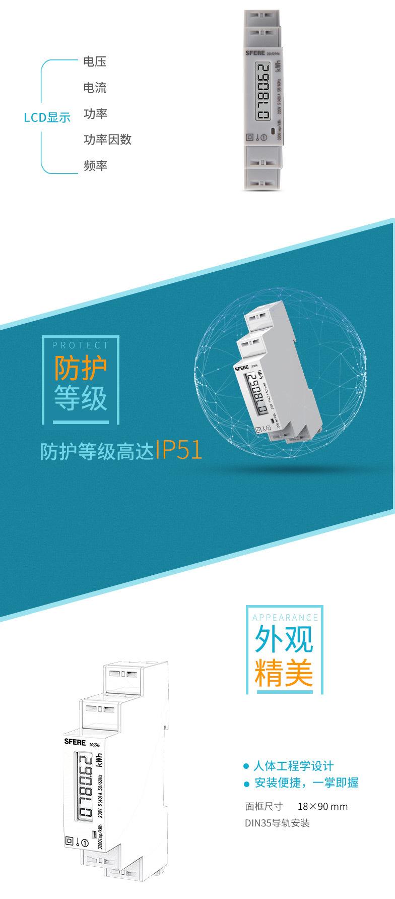 Medidor inteligente de energía eléctrica monofásico montado en riel, modelo Jiangsu Sfeir Electric sfere DDS1946-1P