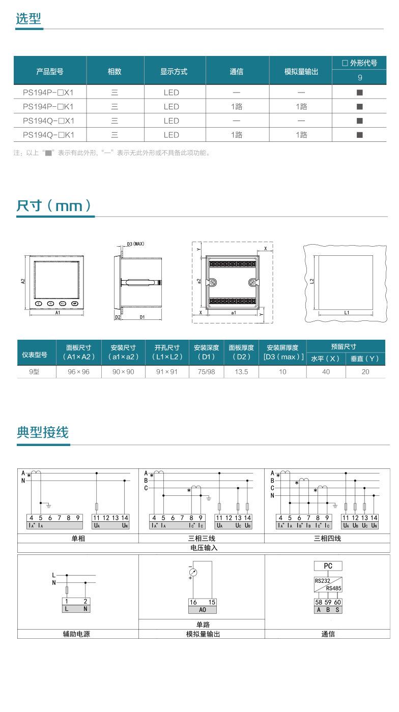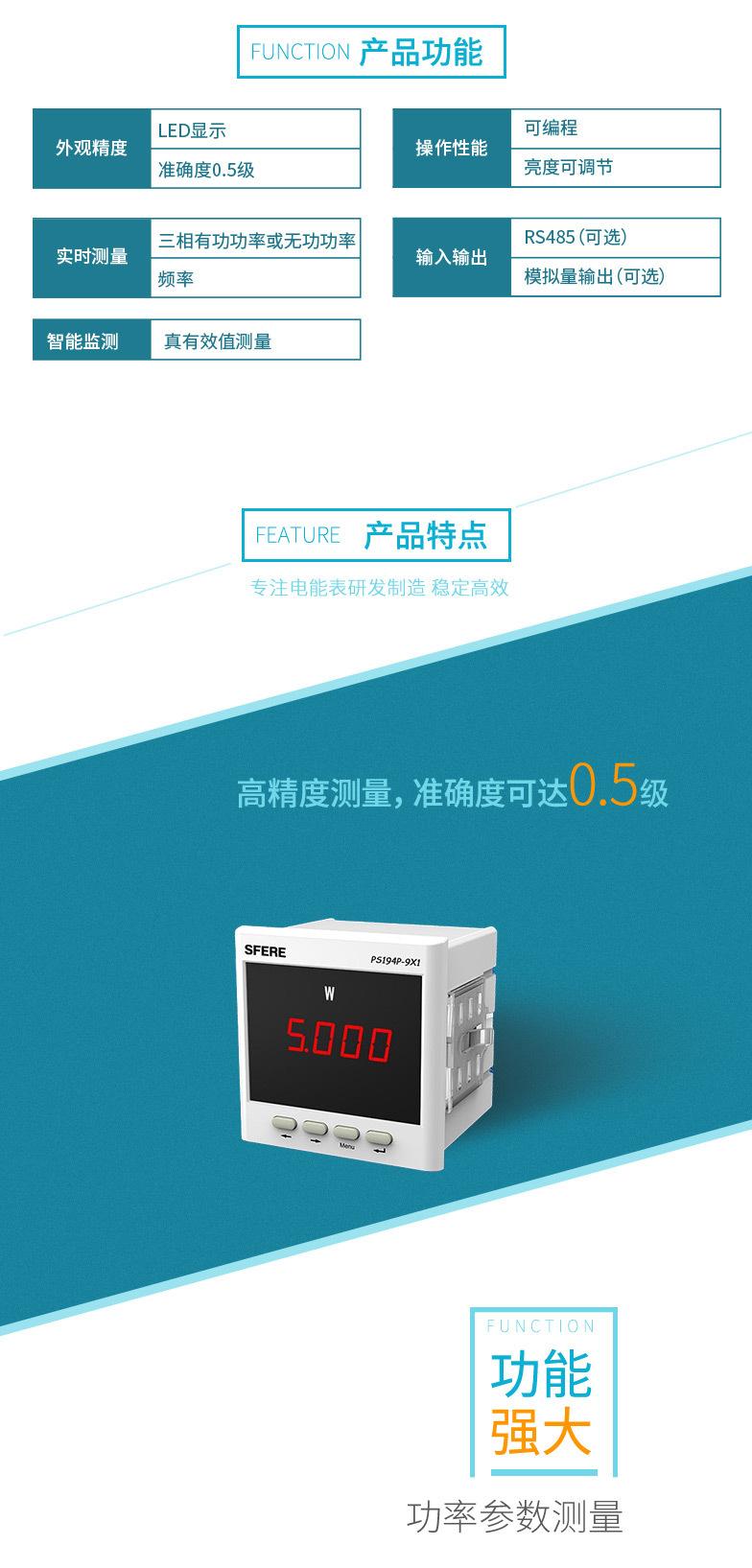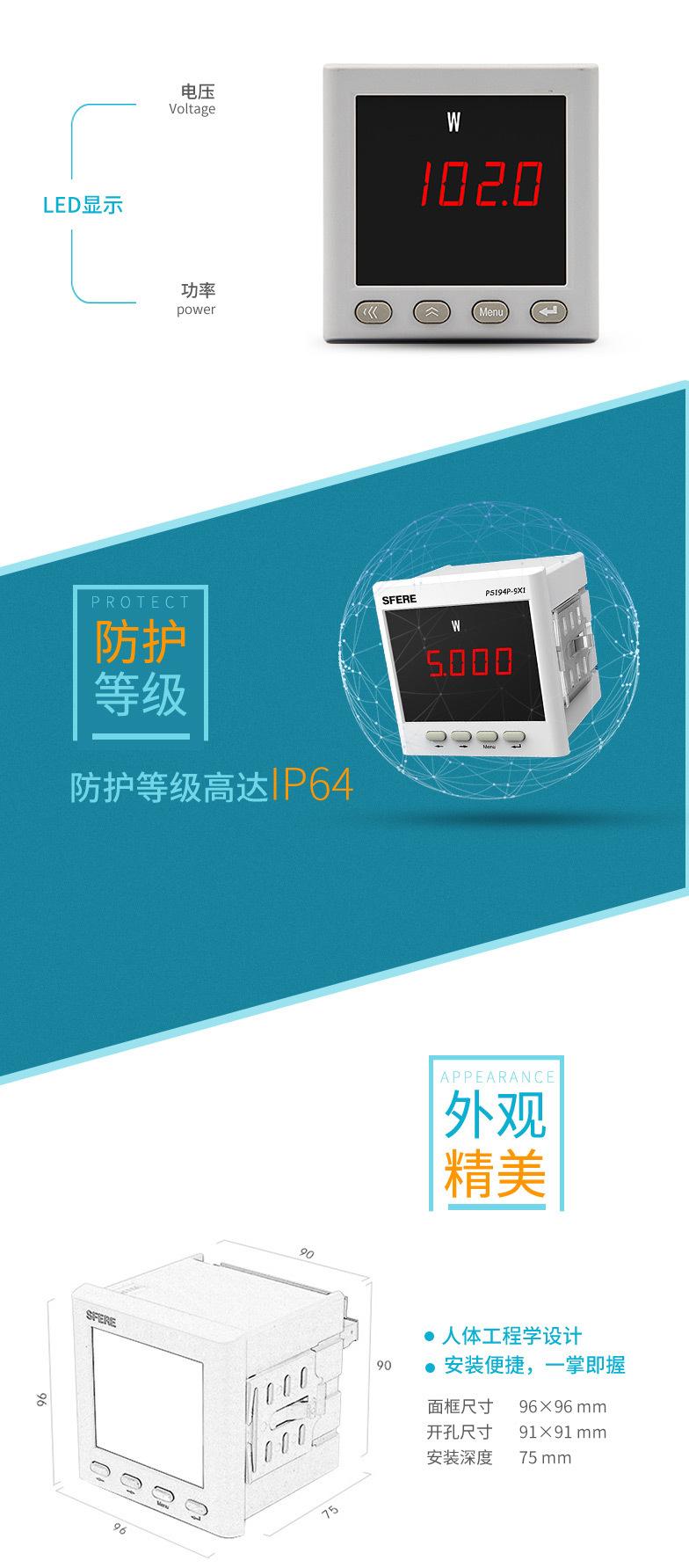 Medidor de potencia activa de CA (PS194P-9X1) con pantalla digital inteligente y medidor de potencia eléctrica multifunción Jiangsu Sfeir.