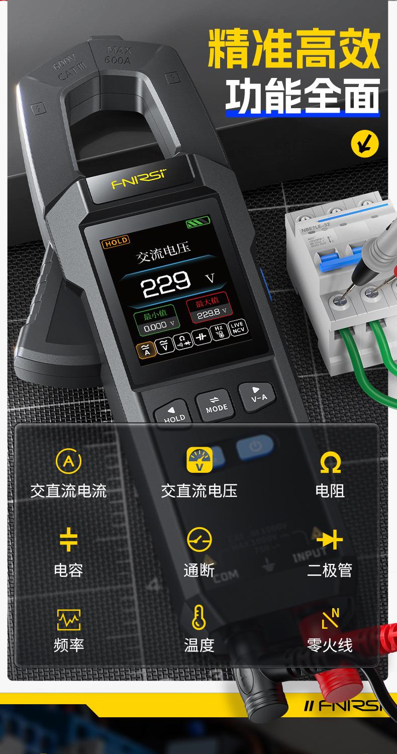 Multímetro de pinza FNIRSI DMC-100, automático, inteligente, de alta precisión, amperímetro universal