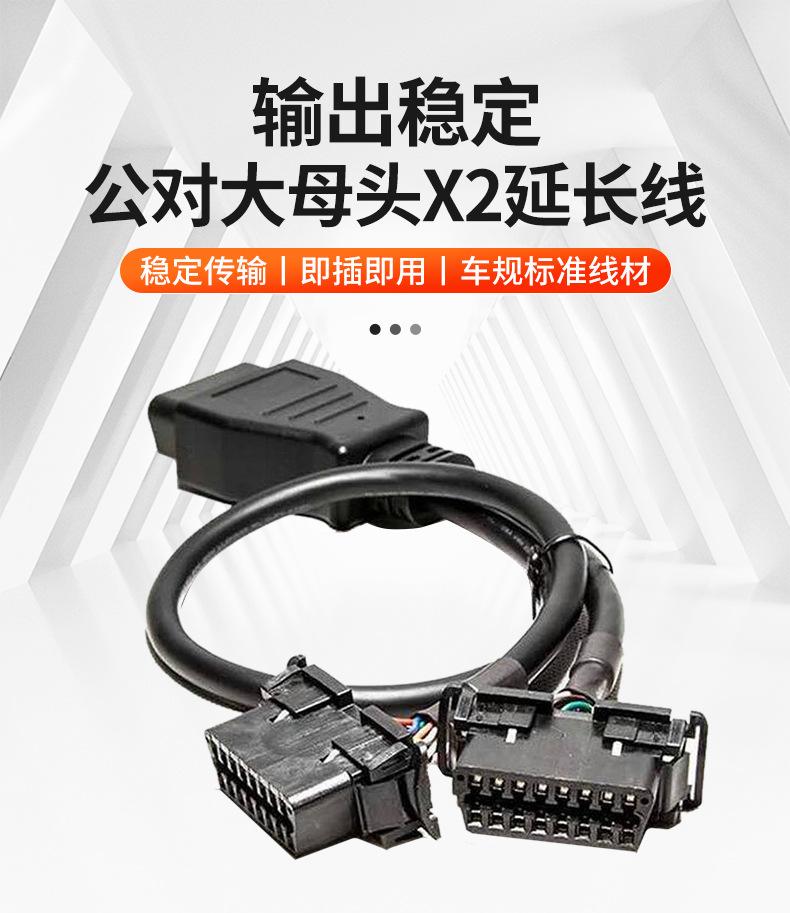 Nombre del producto: Cable de extensión OBD2 macho a conector hembra grande X2