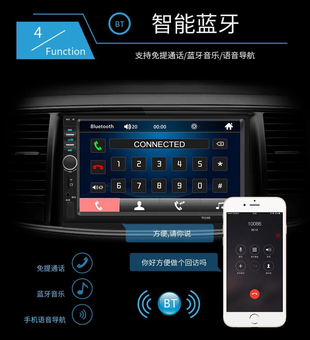 7018B Coche 7 pulgadas Reproductor MP5 Lingote único 1Din Radio multimedia Bluetooth Carplay Suministro directo de fábrica