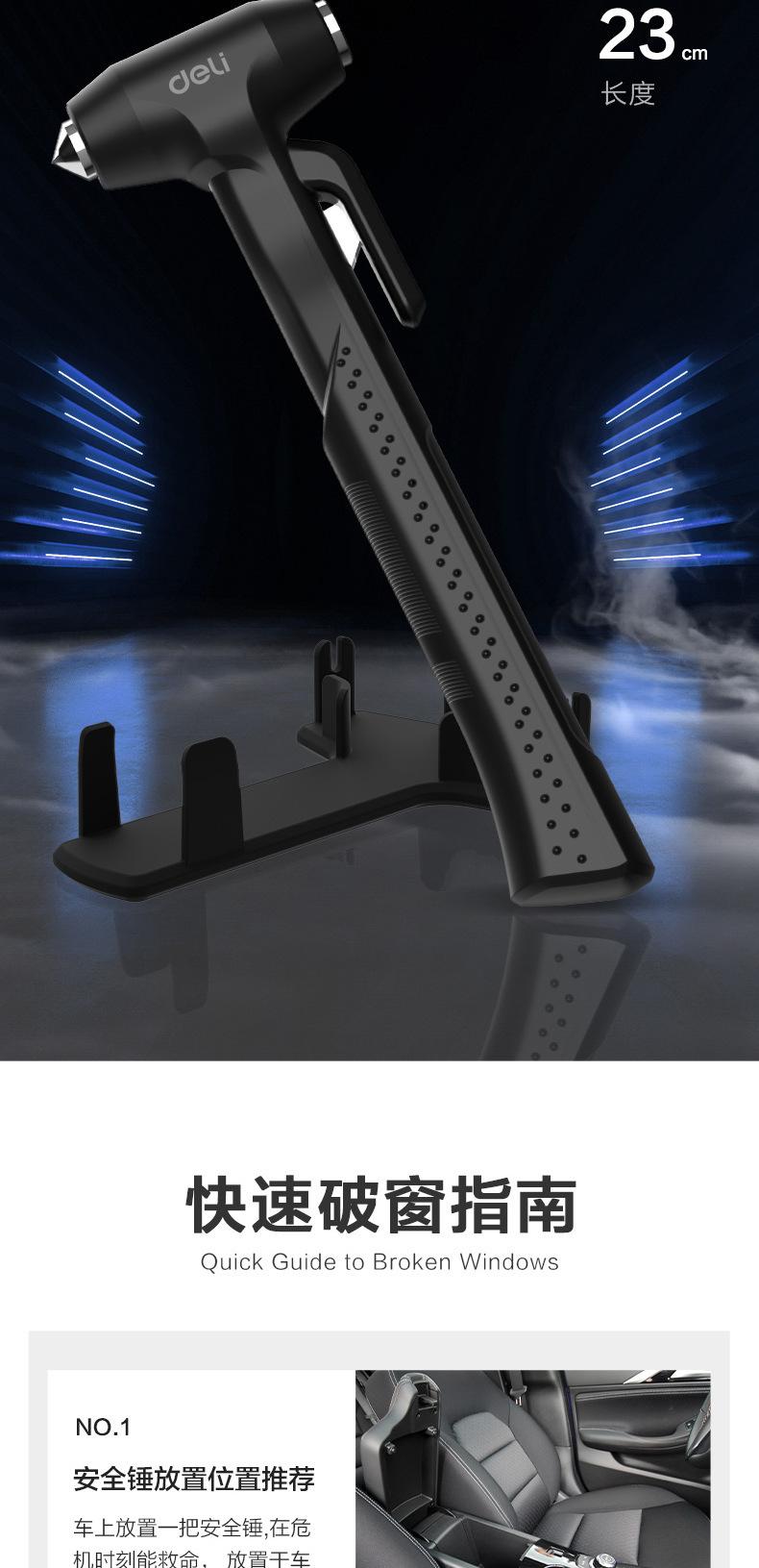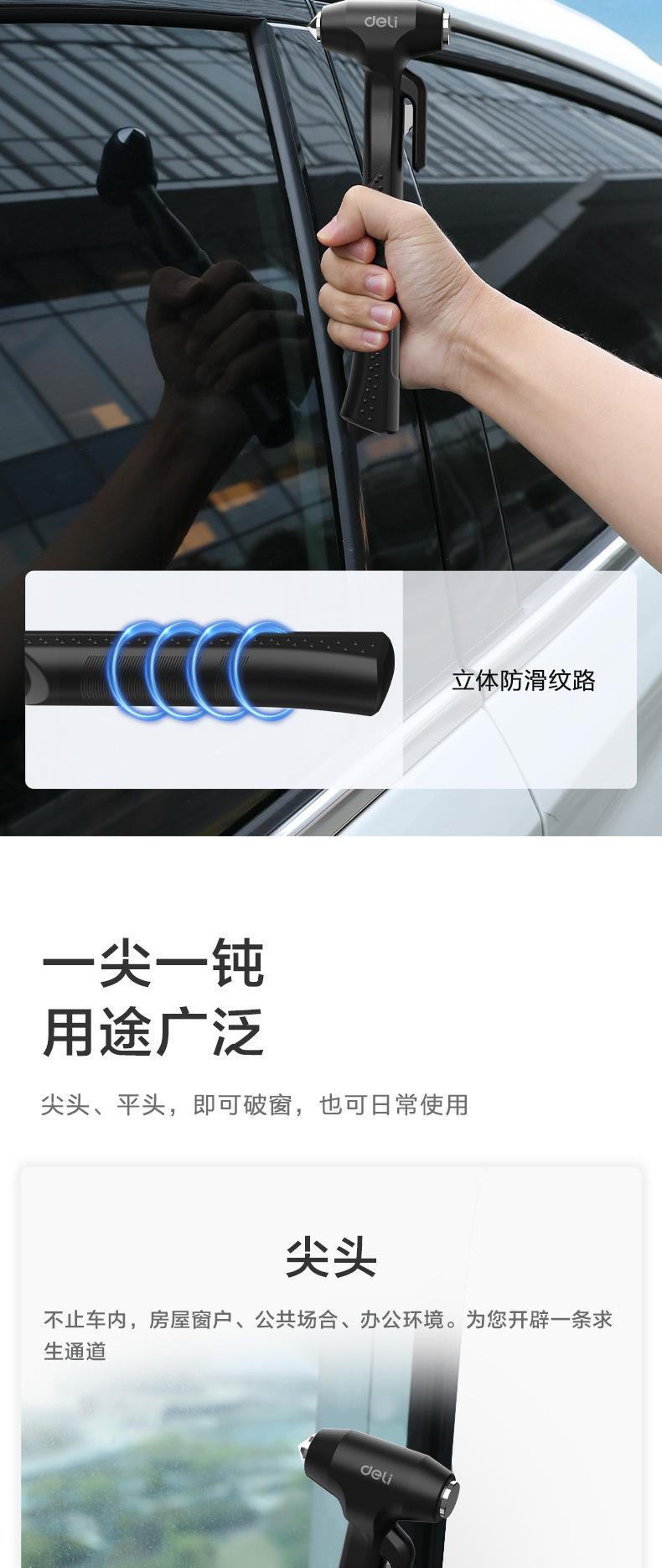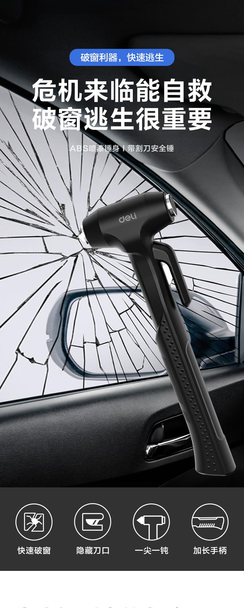 Martillo de seguridad Deli DL871001 artefacto para romper ventanas de coche martillo de vida mini linterna cortador martillo de escape de emergencia