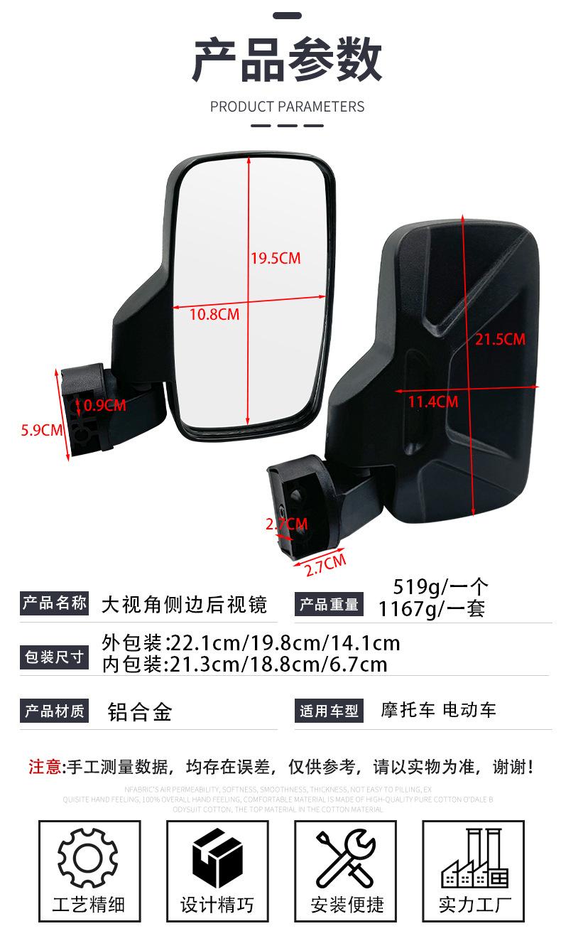 Espejo retrovisor lateral modificado para vehículo todoterreno de playa, todoterreno, UTV/ATV de gran tamaño, de gran venta transfronteriza